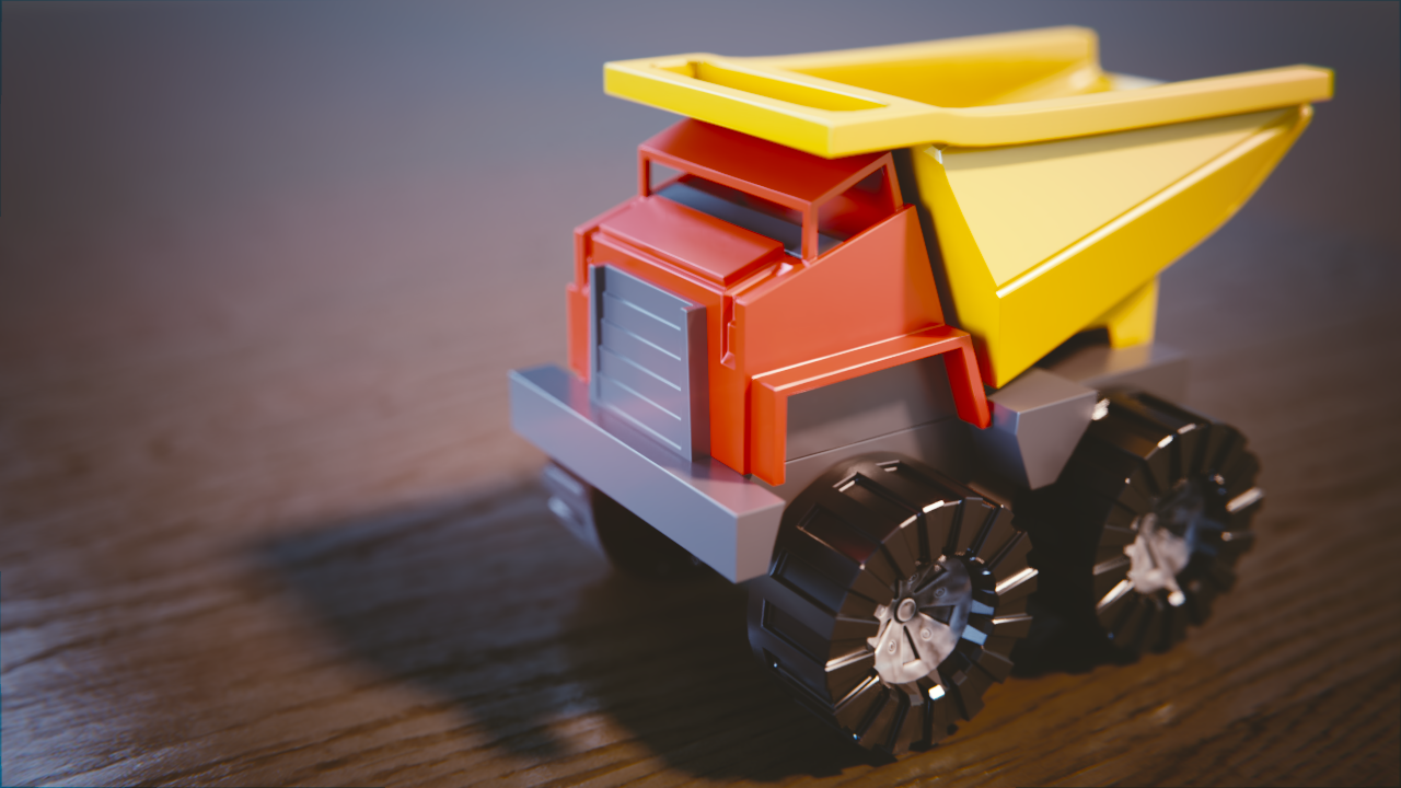 I was going to make a more interesting material for the toy truck, but I wasn't sure how to start, even after making some from tutorials around the web. I mean, I just can't realize which nodes I need for the desired effect. Anyways I left a "dirty plastic" material for the wheel caps I made that only looked good there ha.