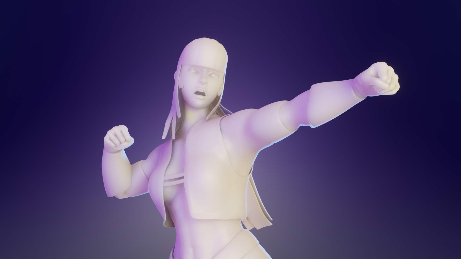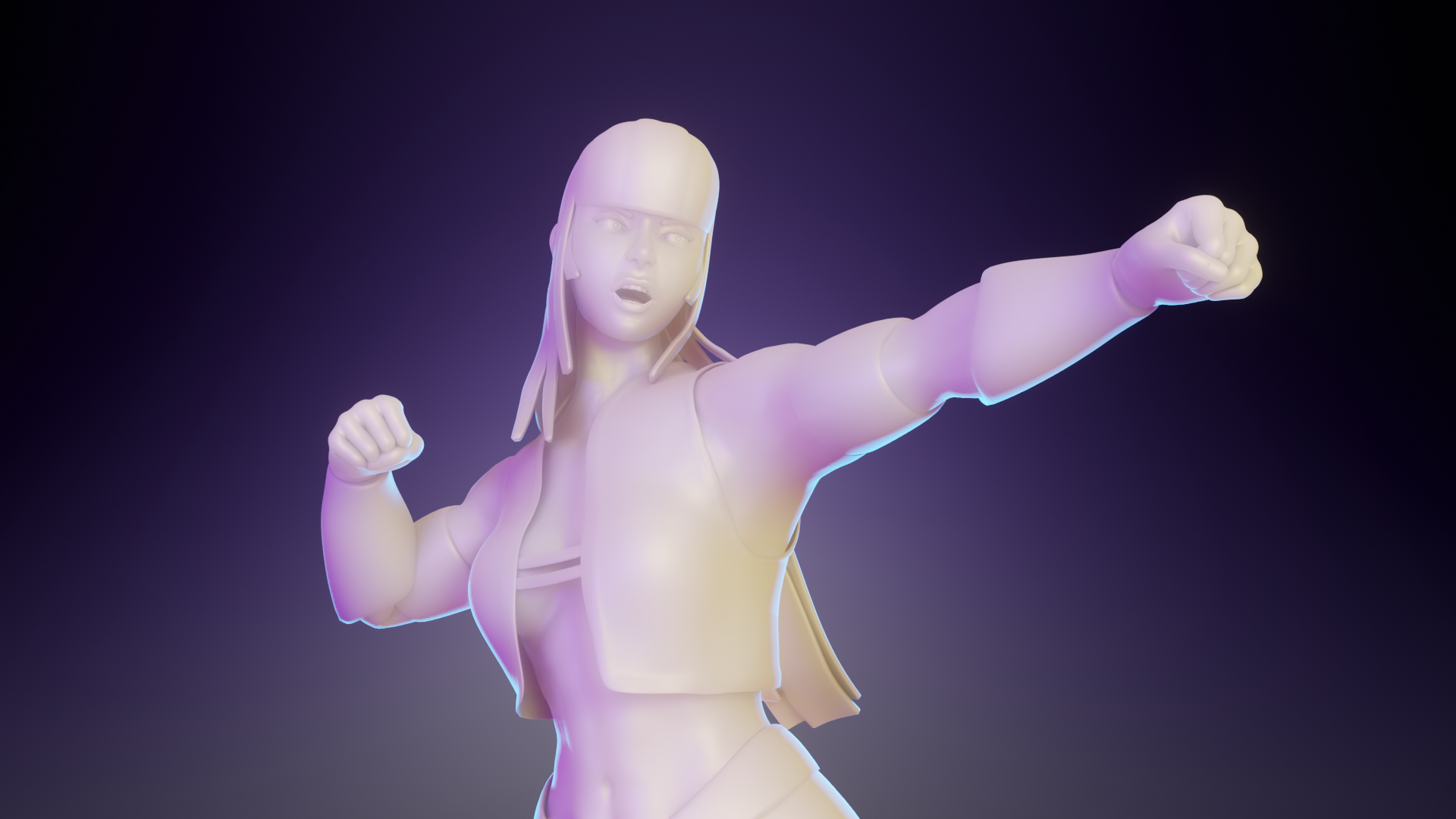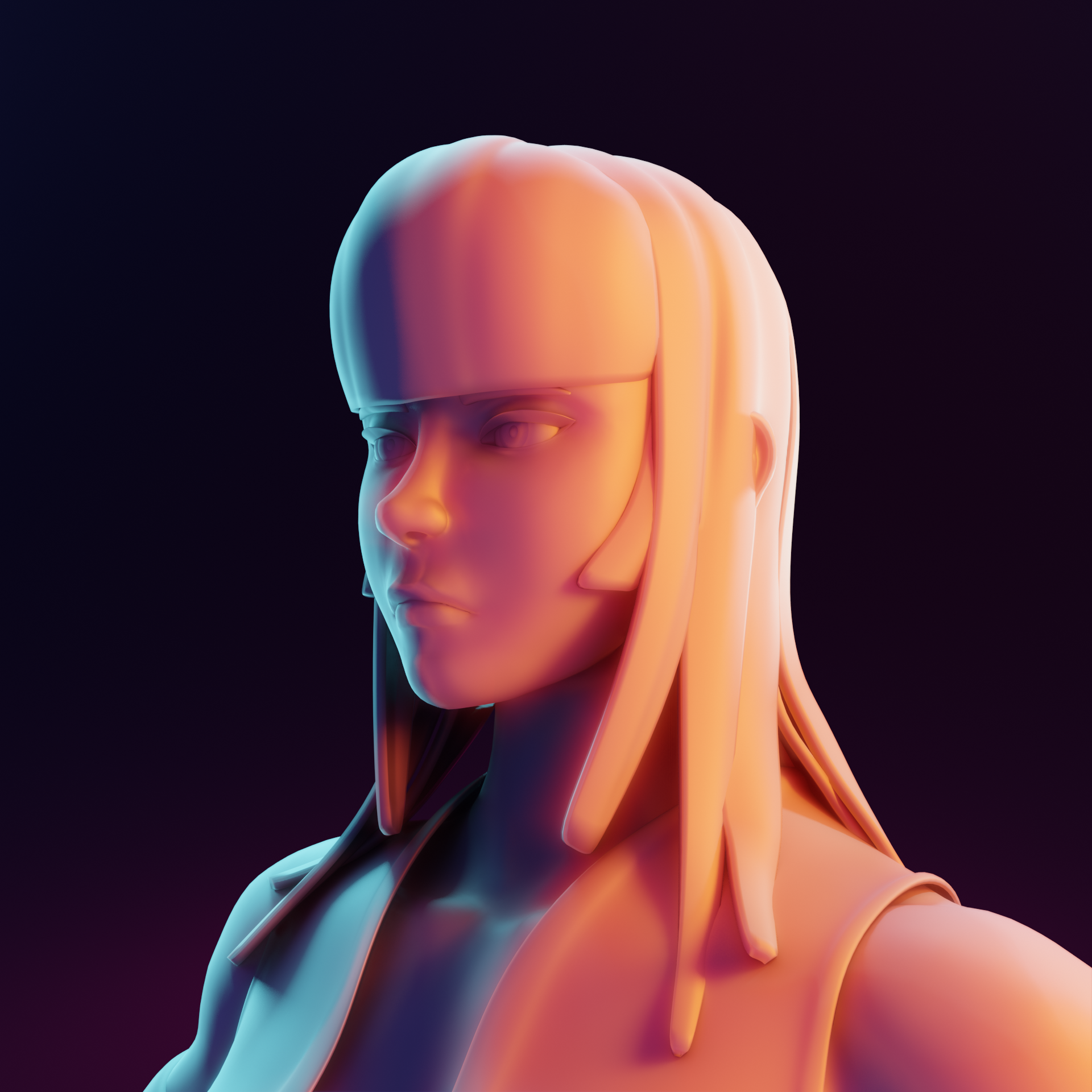 My one note would be to push the key light more to the side. Currently it looks like the key is nearly directly in front of the character, kinda creating a camera-flash effect. It's not that negative but I think pushing the key to the side a bit more would generate a little more gradient across the character's front.
