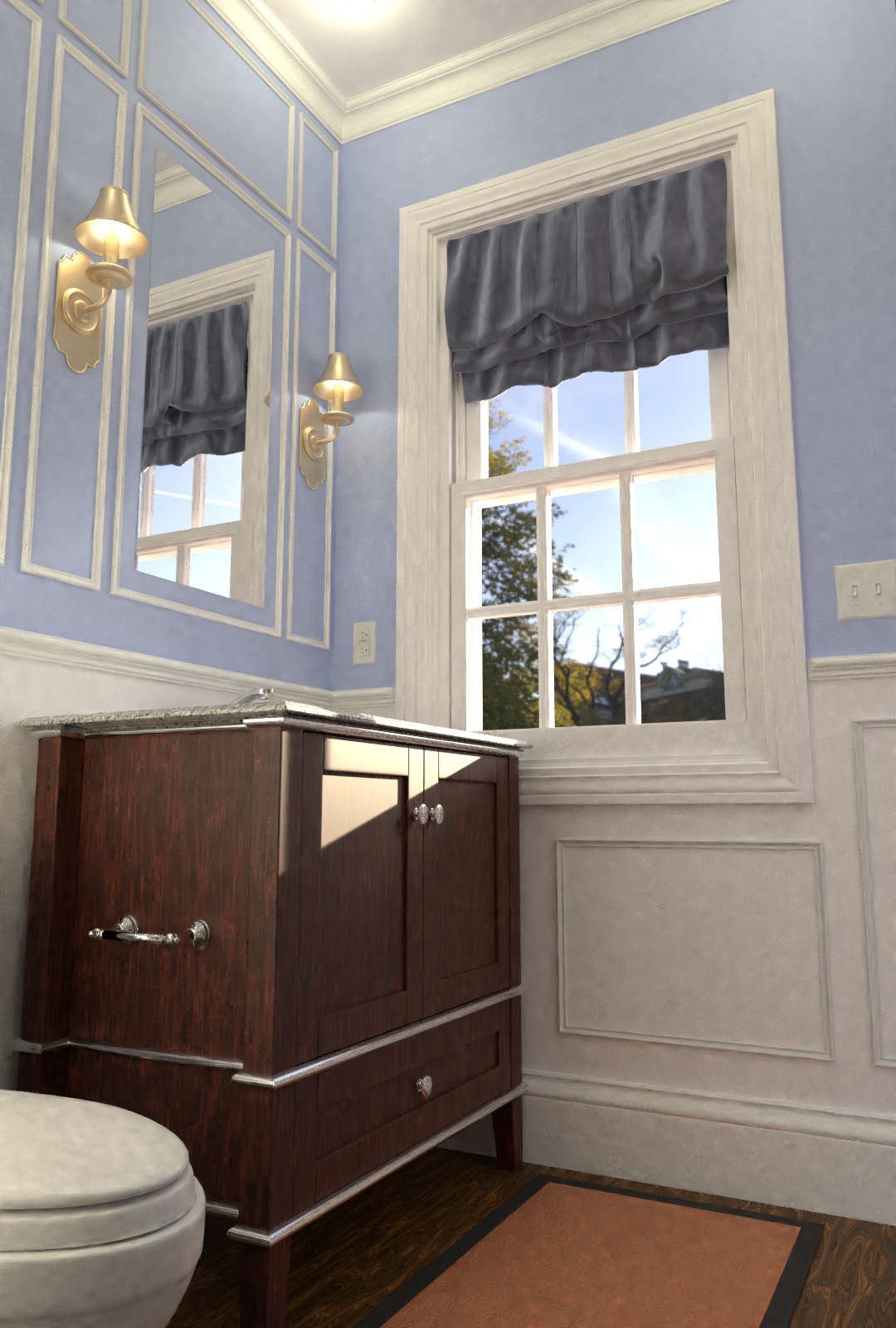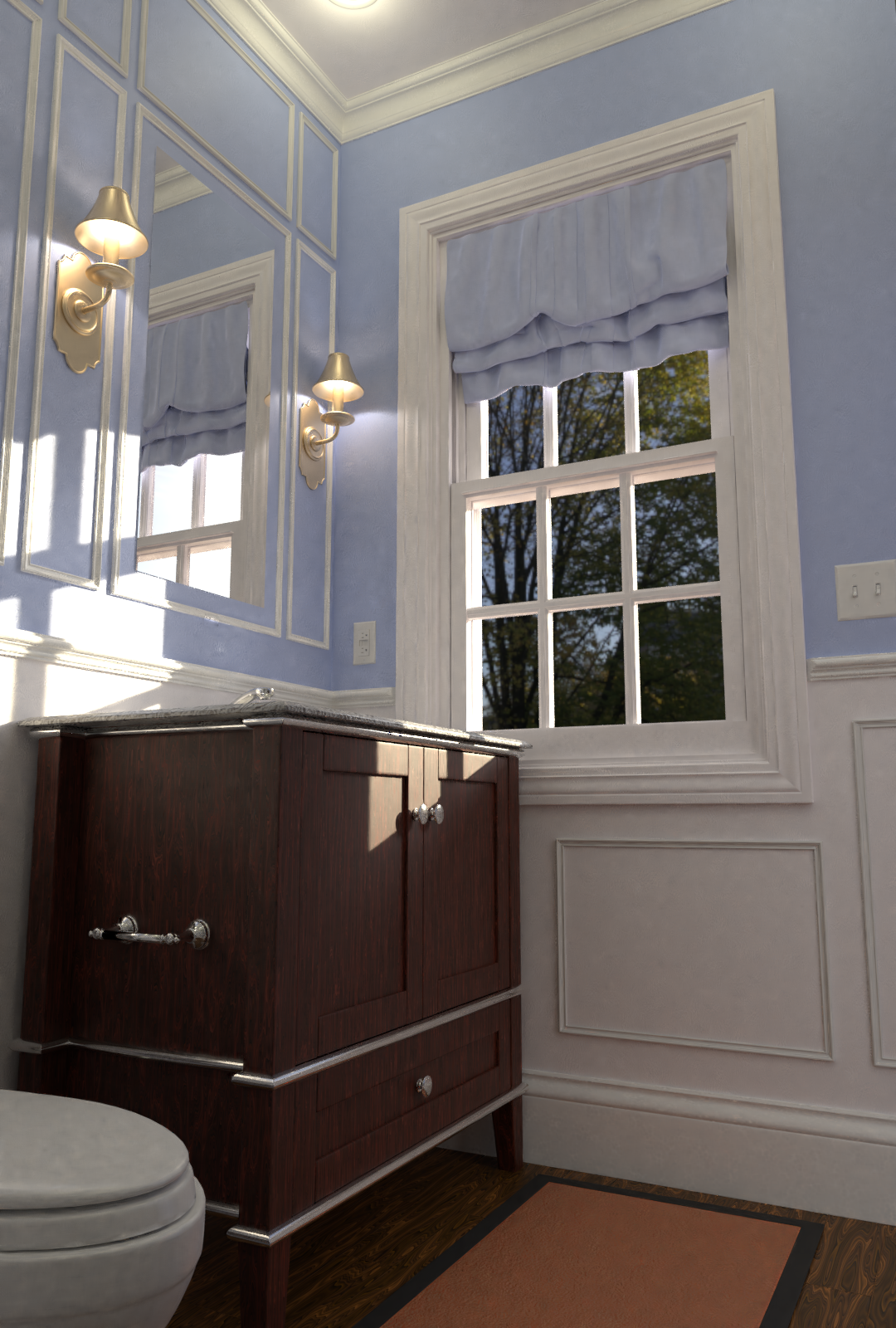 Originally I was planning to make more unique shaders and colors for the window, lower part of the walls made of wood and so on, but I realized that that would end up looking like too much going on. After I looked around my house to give me ideas, I ended taking my "painted wall" material and modified it for the window and what was going to be wood on the wall. I probably should have changed the floor to tiled ceramic...