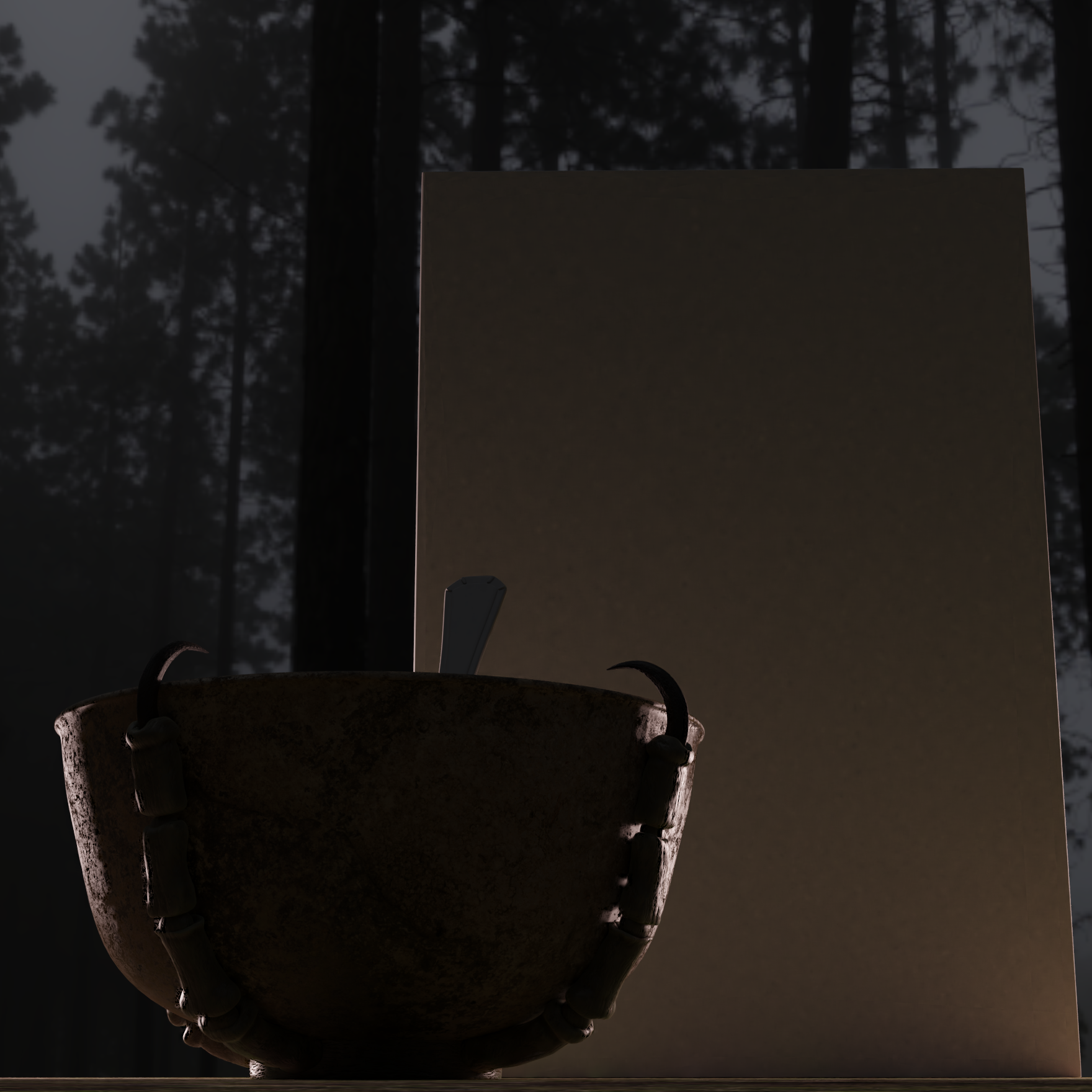 I jest of course, I love doing this, and making my friend's ideas come to life is always neat. So whilst I have worked a bit on Isaac I don't think it's enough to bother showing, so I'll show what I've been doing with the evil cereal bowl instead. Here's the basic scene, lighting and HDRI are bound to change: