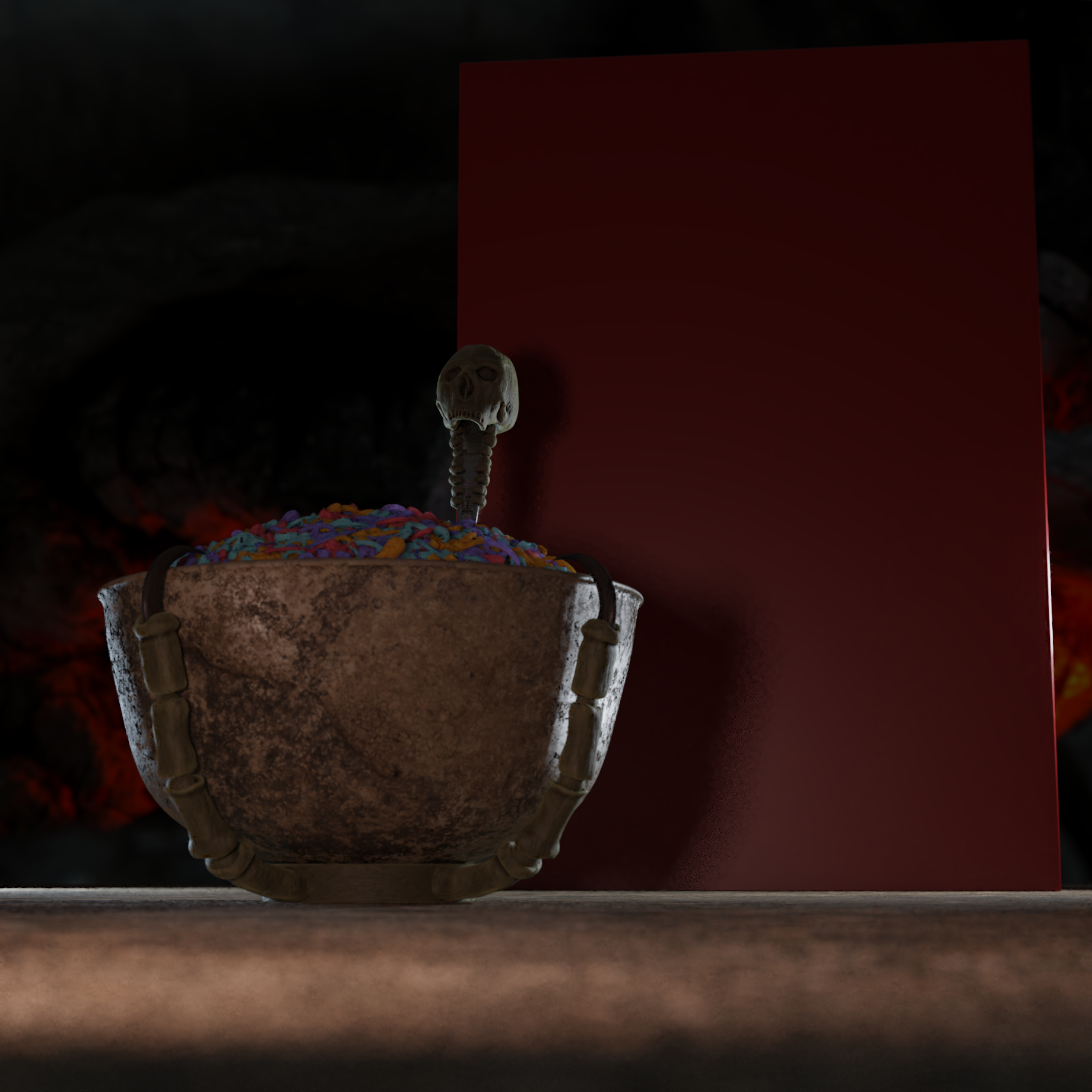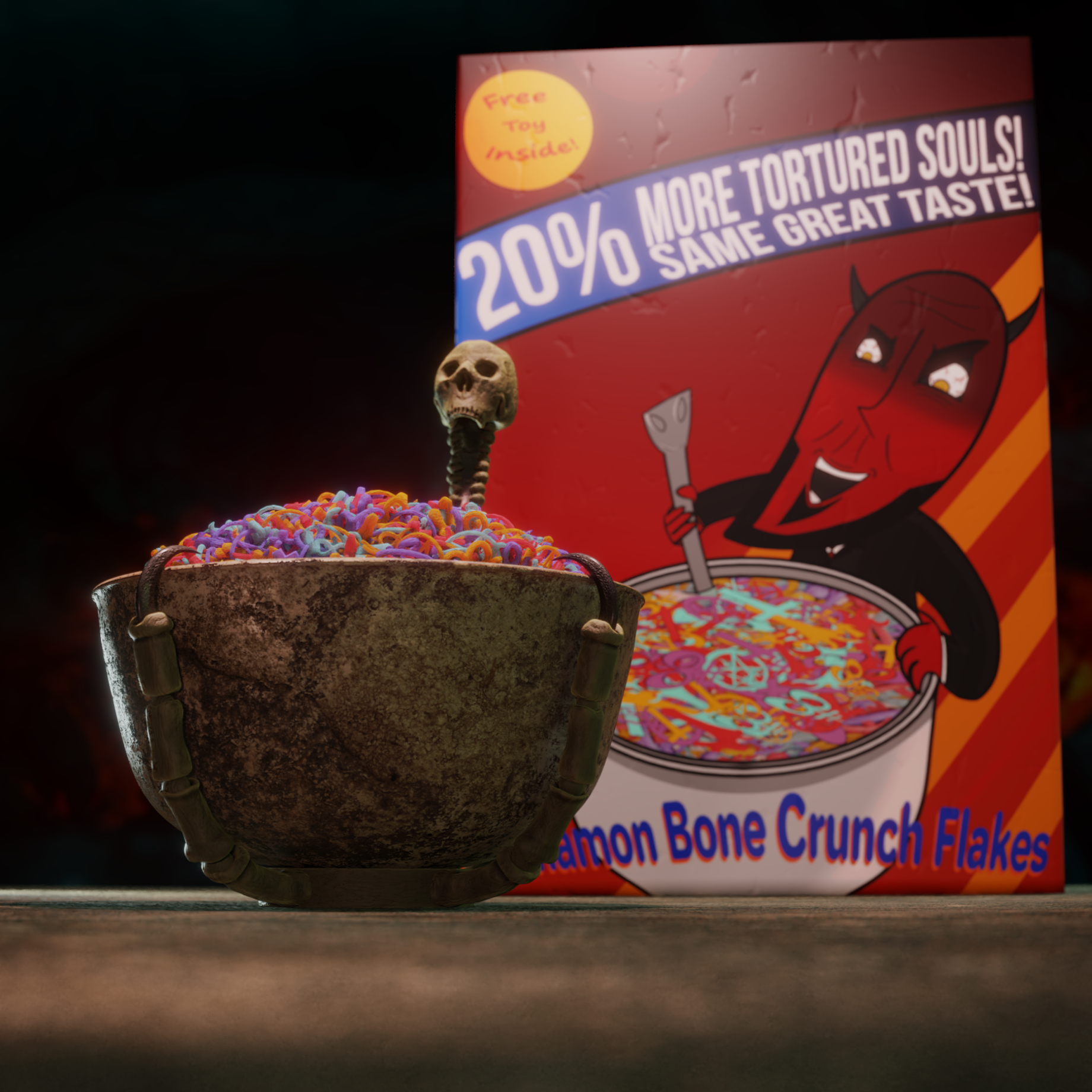 "Demons need a healthy start to the day too, and what could be better than a big bowl of Sinnamon Bone Crunch Flakes?"