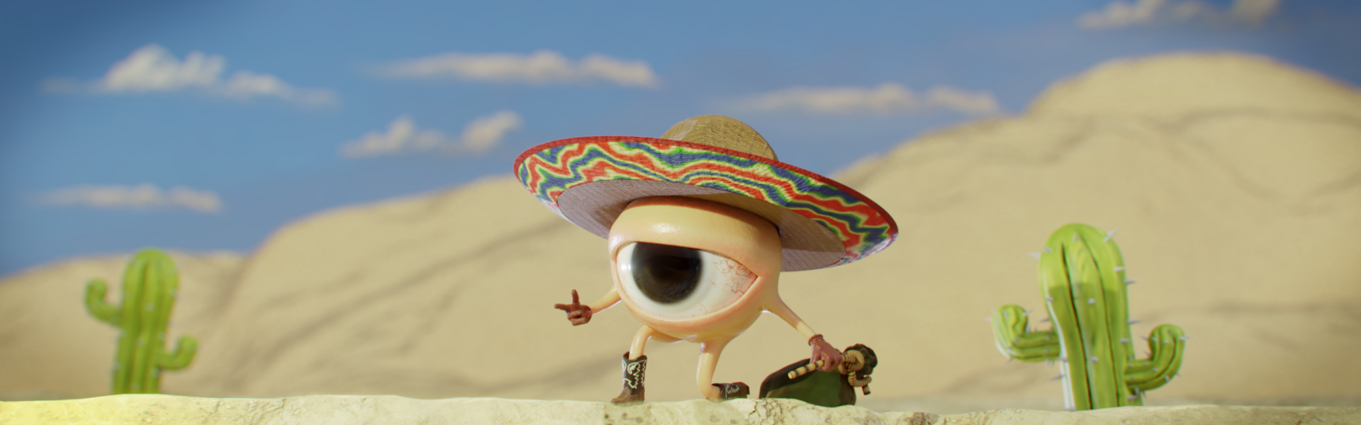 "Armed with only sheer determination and threatening fingerguns, one fierce little eyeball will protect his valuables at any cost. Meet Isaac, the eye with a sack."