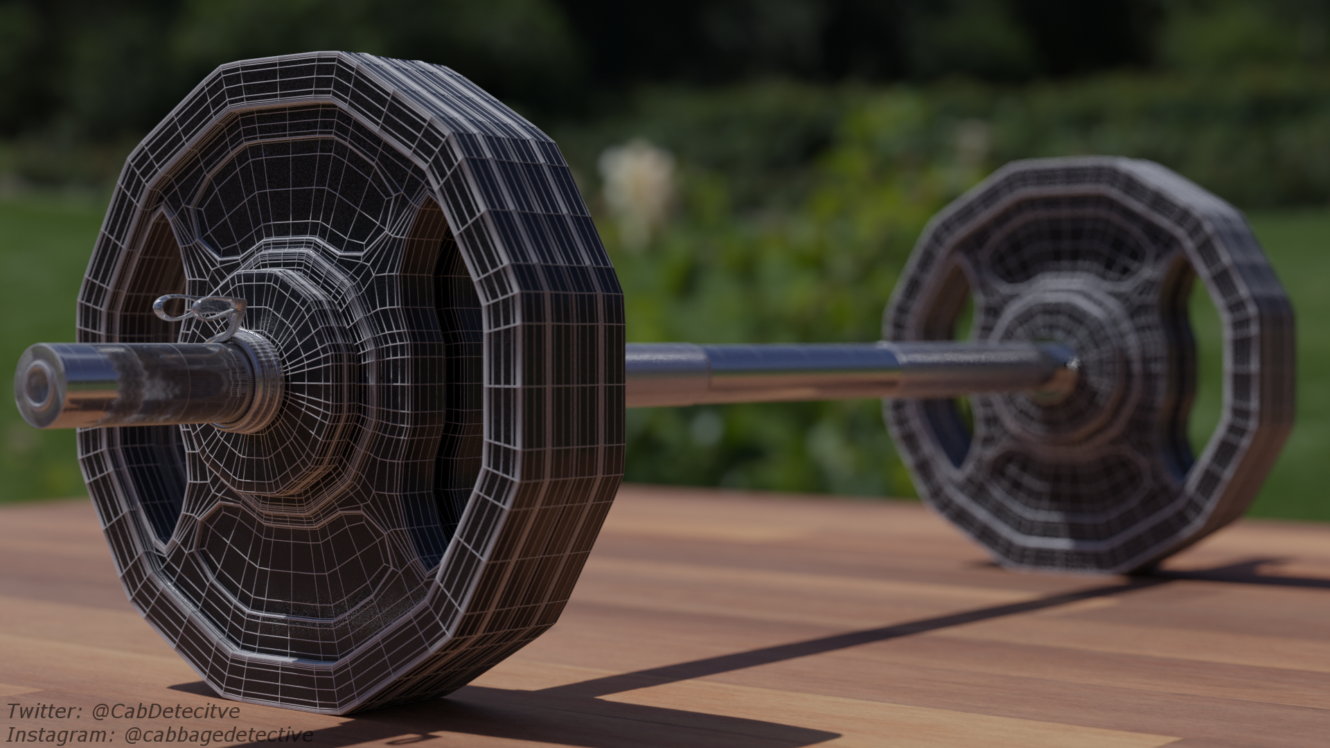 the dumbbell looks really great. amazing work those scratches are a great touch and the texture too on the iron in the middle (dont know the word xD the silver iron stick) really amazing work Aaron