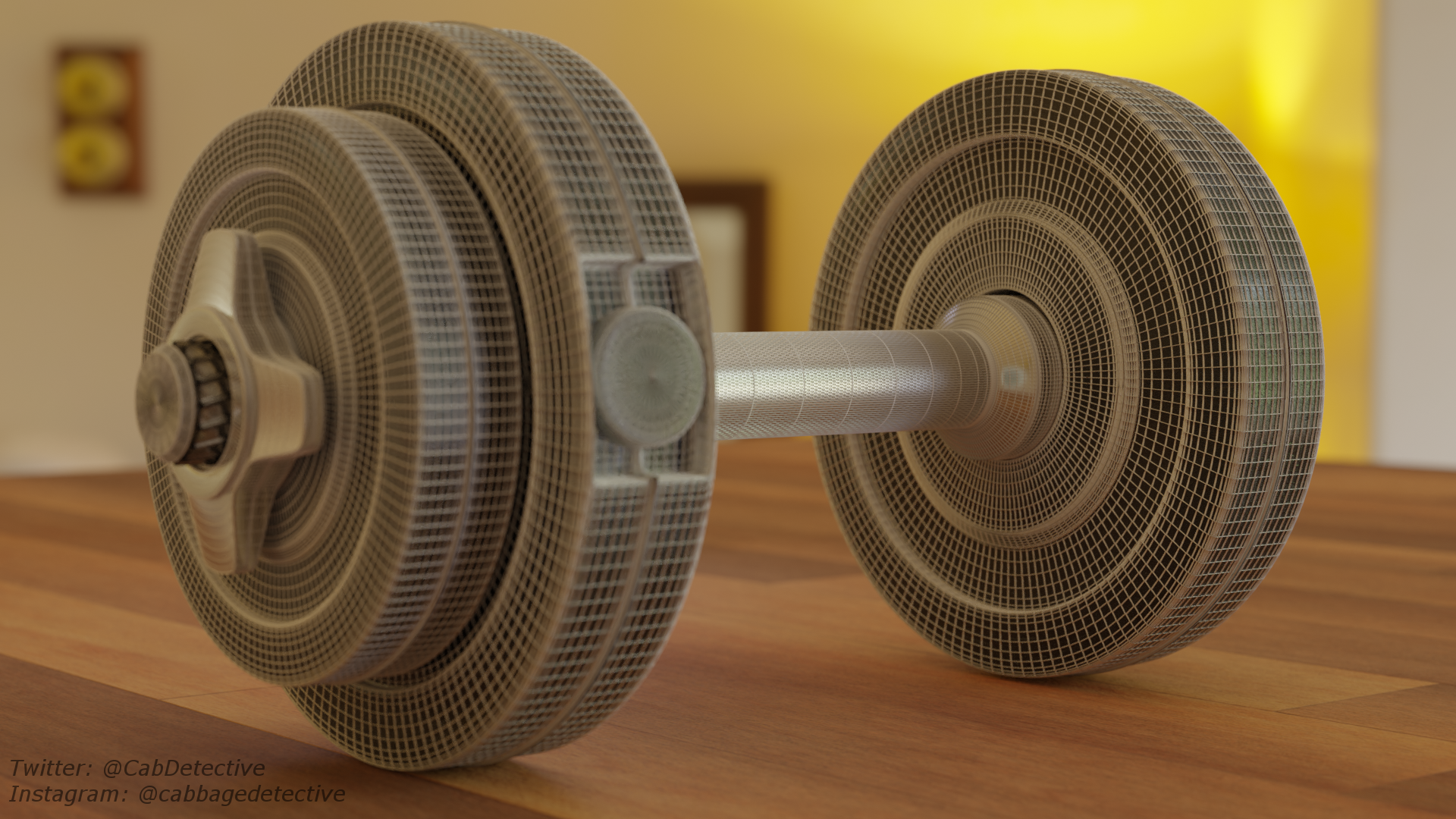So I decided to enter Nvidia's Characters of the Future competition (details here if any of you are interested in joining) by starting out and doing absolutely nothing related to characters and/or the future whatsoever! I decided to model one of the props in the scene, namely a dumbbell: