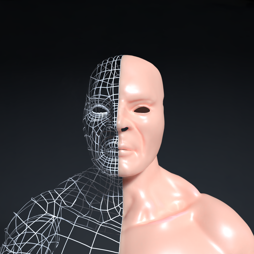 Some are adjustments are to be made but considering I've never retopo-ed something this complex ever I don't think this is too bad. Also, I did this when I was making the face and I found it rather eerie, like a mask: