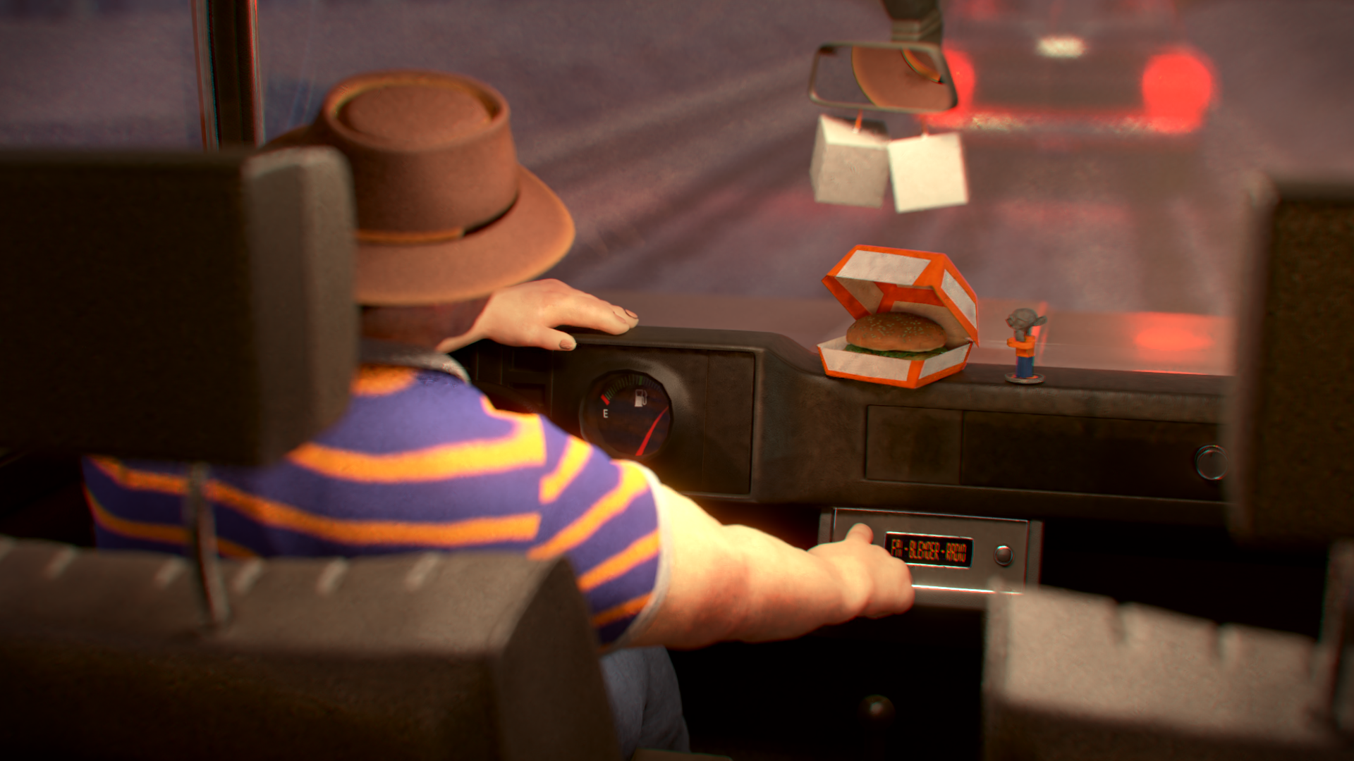 Whilst I'm pretty pleased with the car interior itself, as it contains the most detailed procedural materials I've made so far (though I think I went a little overboard with the dirt) The character is the thing that I think sticks out the most negatively. Partly because I'm not used to adding micro details and texture painting and partly because I had very little time left to do it in (gonna say it was mostly the latter to save my ego). There are also a few other things like not being able to add atmospheric touches like rain or fog due to time constraints.