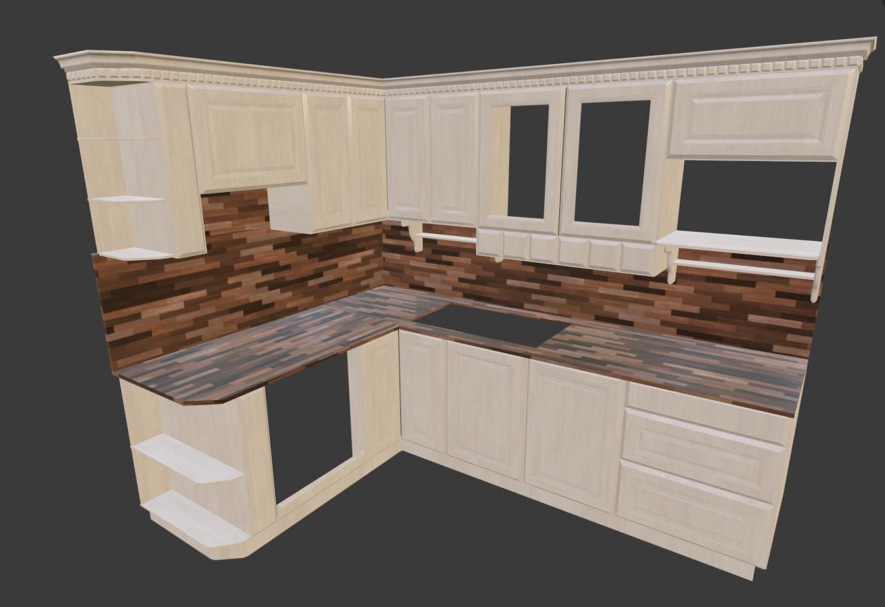 I still need to create a glass material and inner parts for upper cabinet.
