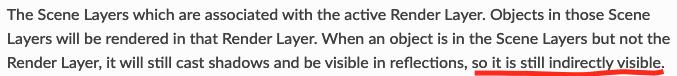 jjonas The Blender Wiki says this should happen, the reflection from another layer still showing up. Is there a way to kill this?