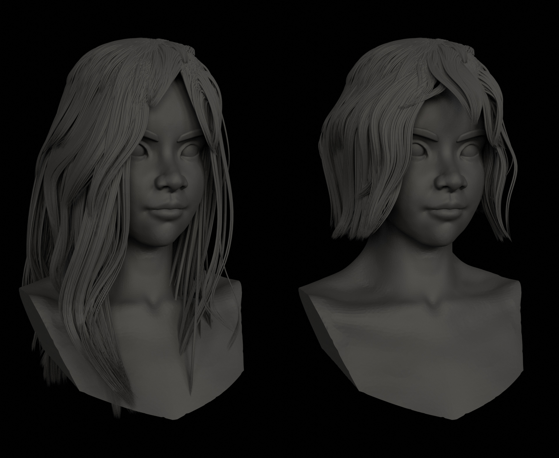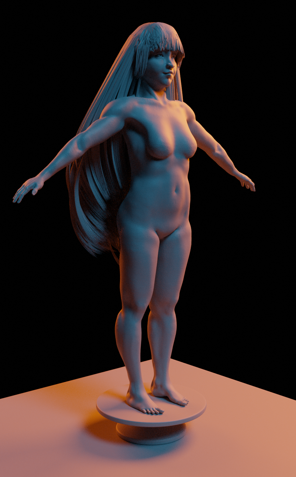 I'm waiting for next week's critique stream to continue with my anatomy, however I figured I'd give the face a try. I hadn't decided what ethnicity I'd want my character to be, but seeing as my body reference was an asian woman I decided to give that a go. I had a pretty hard time with the shape of the eyefolds, but it's getting there. This is pretty much my first time messing around with using particle hair as hair instead of making a field of grass or something. The combing is pretty relaxing :)