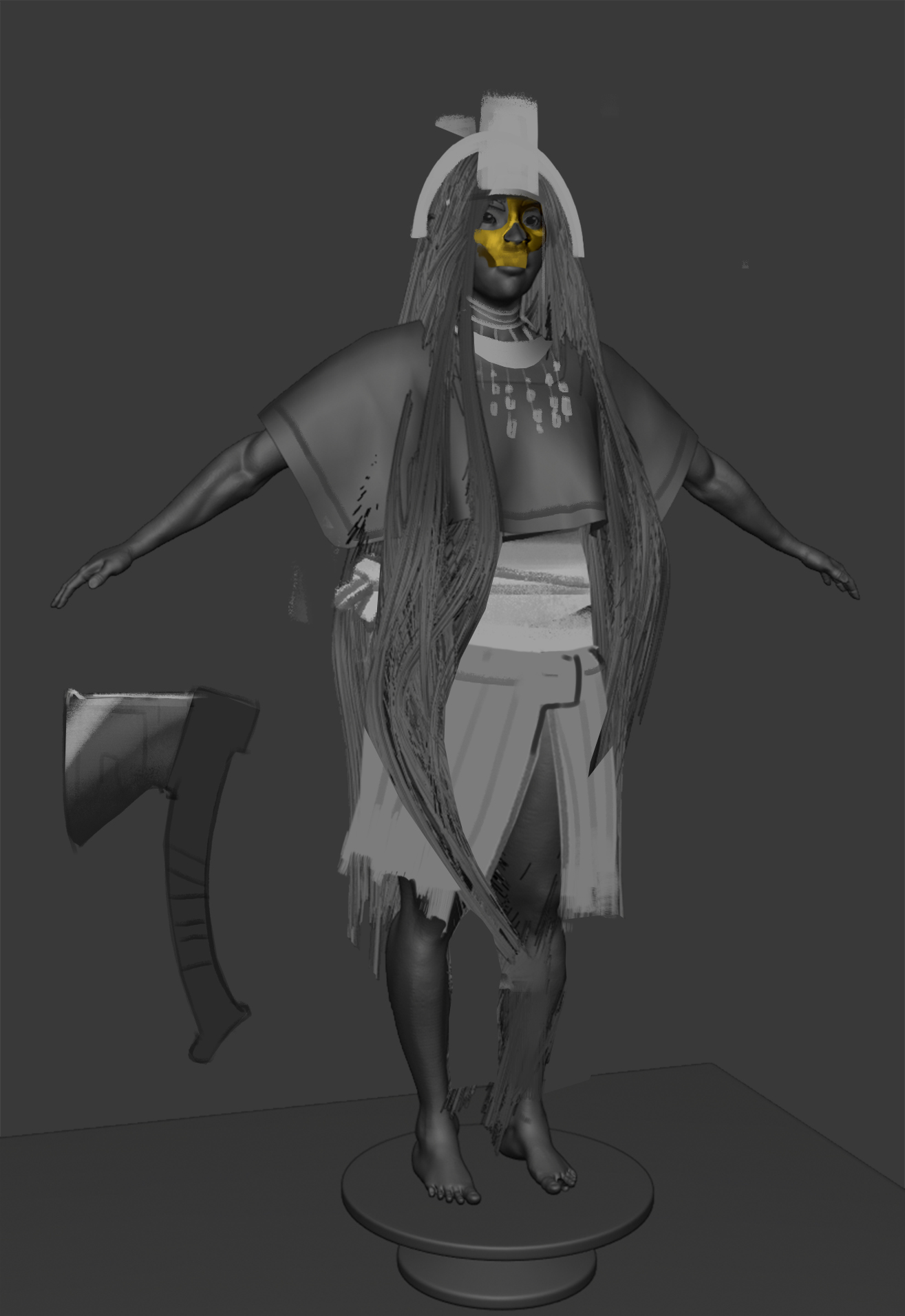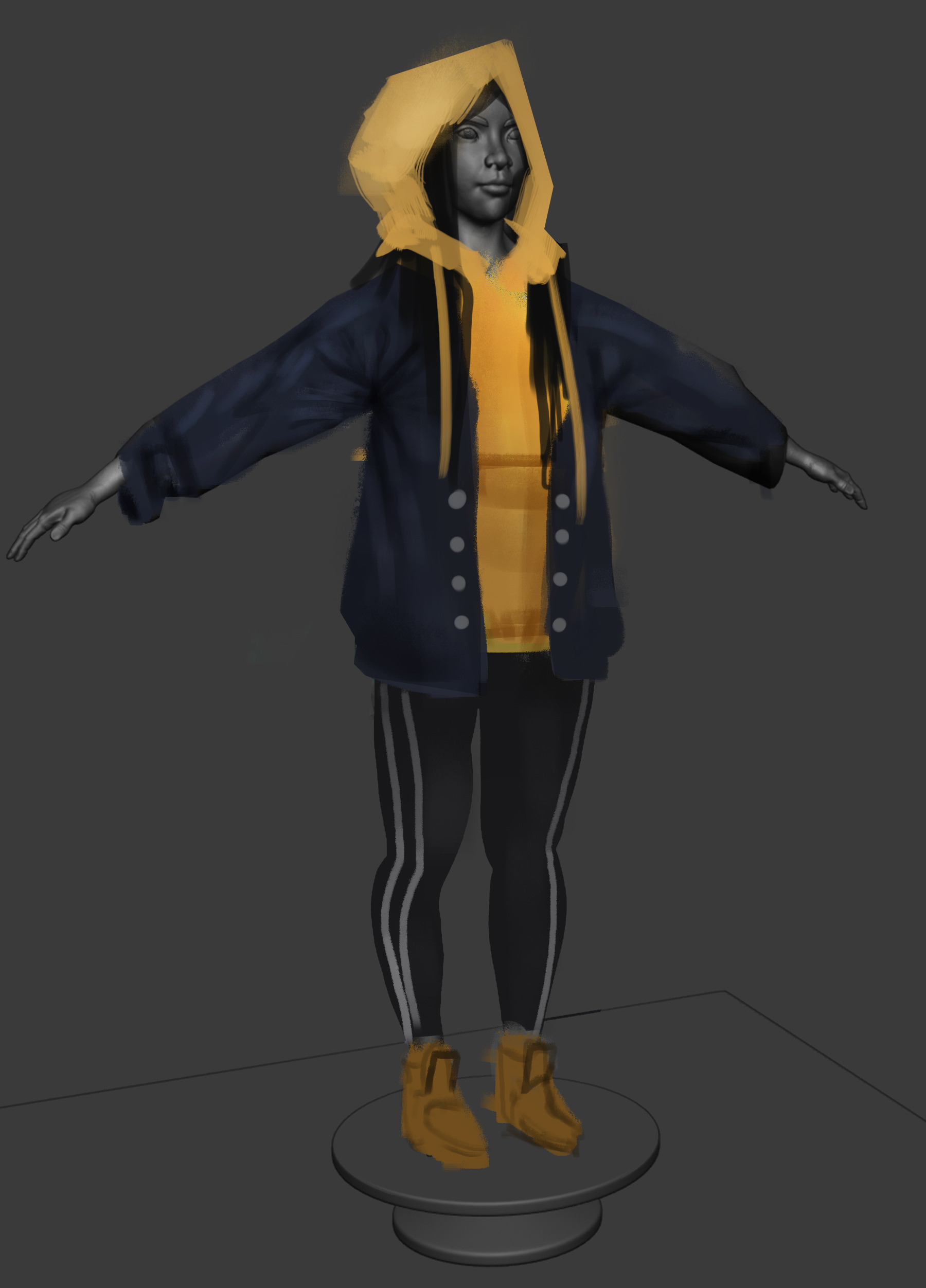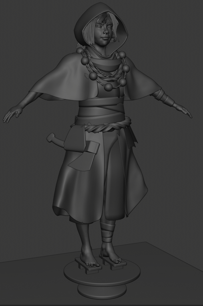 Got some feedback on the critique livestream. I'll need to rewatch the video once it's been archived because I got kind of excited and I'm pretty sure I've forgotten half the feedback except for the feet / hands being too small. I do feel re-energized to continue on with the project. I'm getting closer to an actual design too. Making all the clothing / accesoires might take a long time since I'm going to have to experiment a lot with cloth sims / sculpting etc, but I'm feeling the fun again!