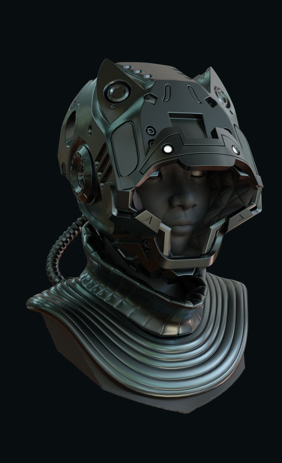 Still alive! I only have time to work on my own 3D stuff in the late hours, so it's all a tad slower these days. Anyway, I have been keeping up almost every day. I''ve actually got 2 or 3 little projects that I think worked out pretty well, but recently I've finished the 'Sci-Fi Helmet' course and I think it turned out pretty alright. Hard-surface sculpting is definitely tricky and so was the retopology, but I'm pretty pleased with how it turned out. I feel like if I were to take another shot at doing a similar helmet I could take it even further.