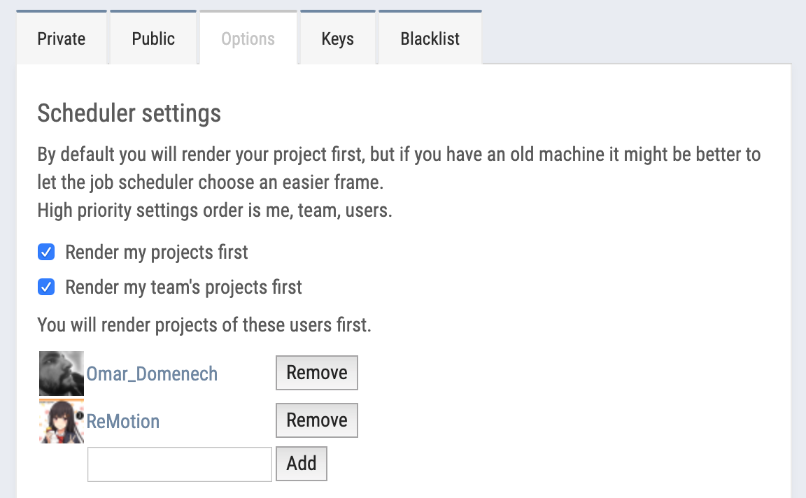 Note, my including Omar in my list is probably redundant since I have the "Render my team's projects first" checked.