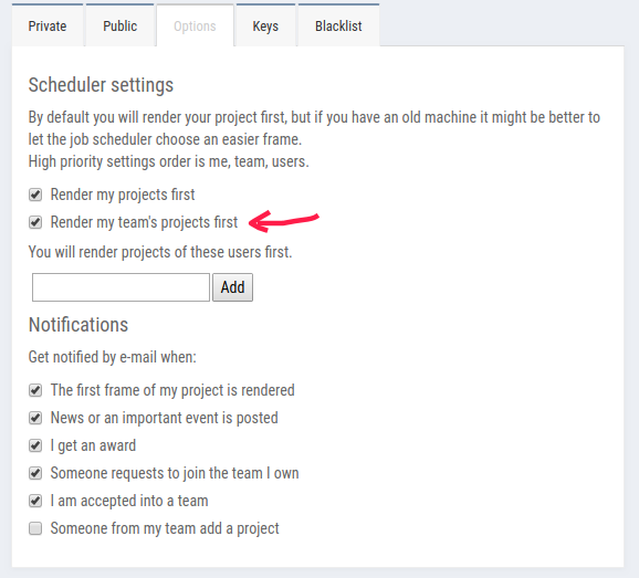 sheila5 Have you enabled the Render my team's projects first checkbox in your SheepIt account options?