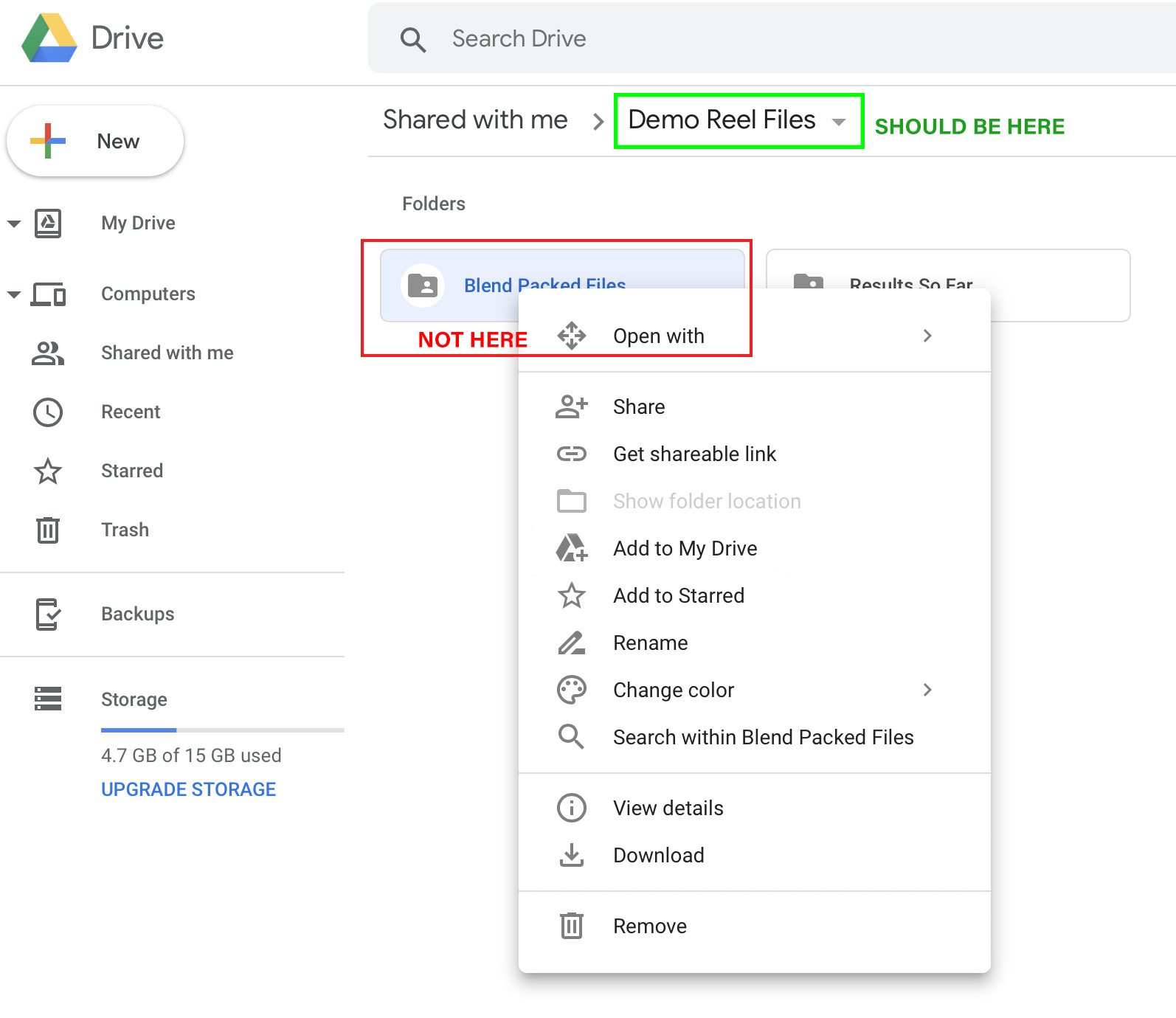 So it feels like that's the link that got shared. But that is taking you automatically into the Demo Reel Files folder.