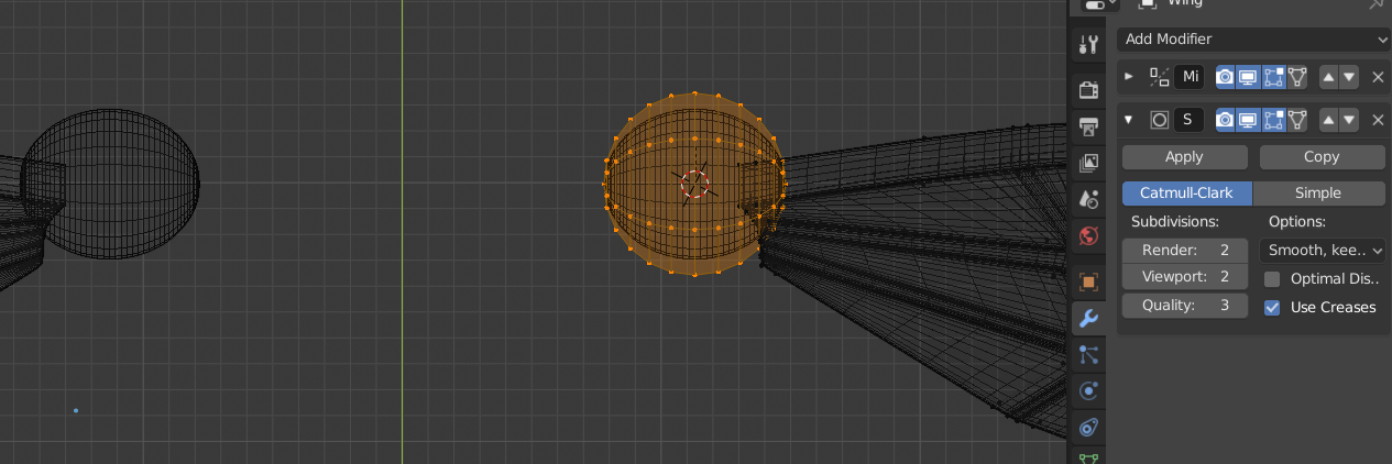 I used a UV Sphere as the end of the wing and it turned into an oblong shape as soon as I used a Subsurf on it: not round but oval!