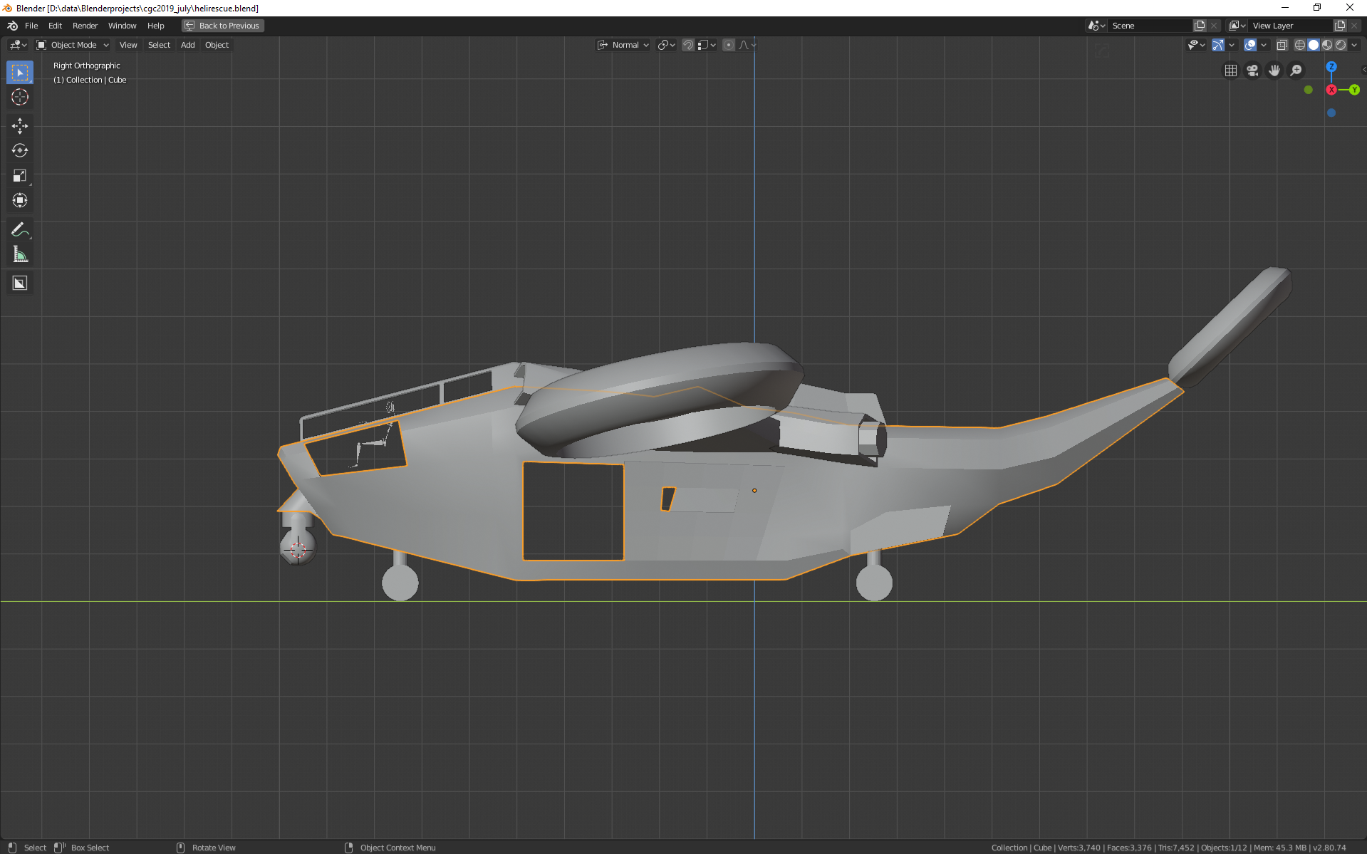 Second concept pass, still blocking out big shapes, basically looking at the silhoutte more than anything else. and keeping in mind the functionality of it, its a rescue helicopter, it can be bulky, really have to keep tell myself to keep it still on the big shapes and not start model actual parts just yet.