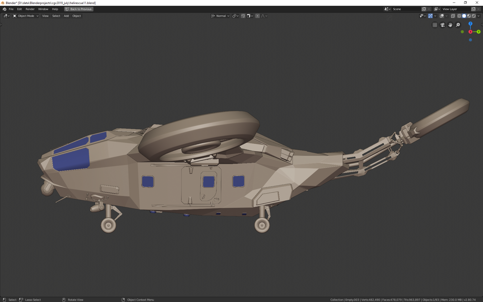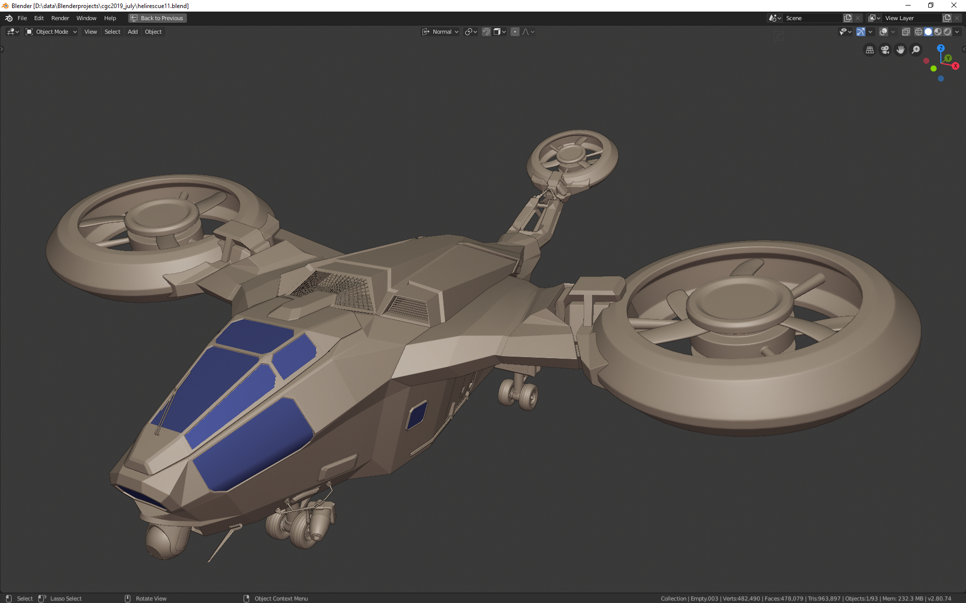 So, landing gear not finished, nor the cable stuff. however i think i now have the overral polished shape and big meshes ready (until i spot something else :) ) anyhow, fixed lot of alignment problems in the mesh. simplified the top portion. added big details to where they made sense to break up the big planes. reworked the exhaust pipes. made the back door more visible.