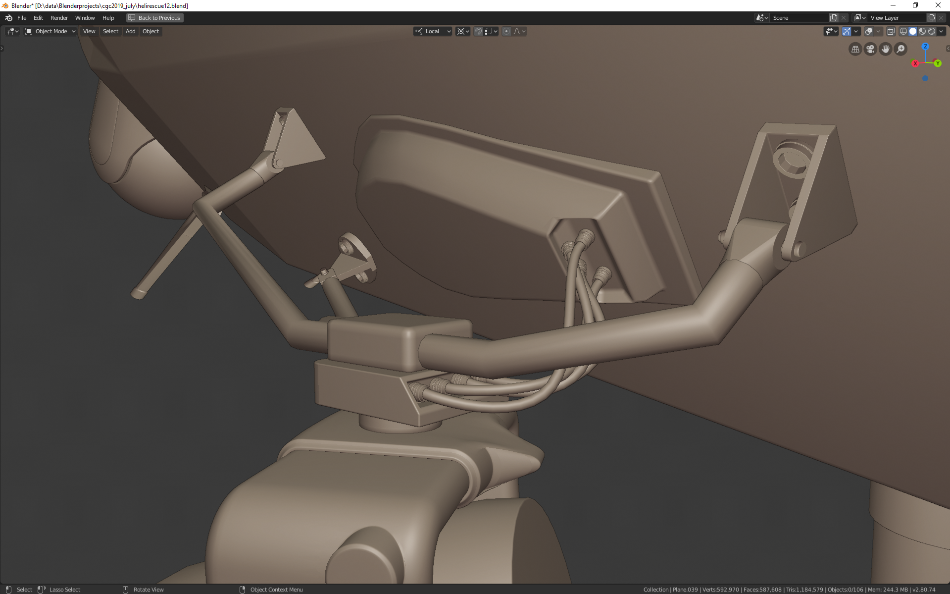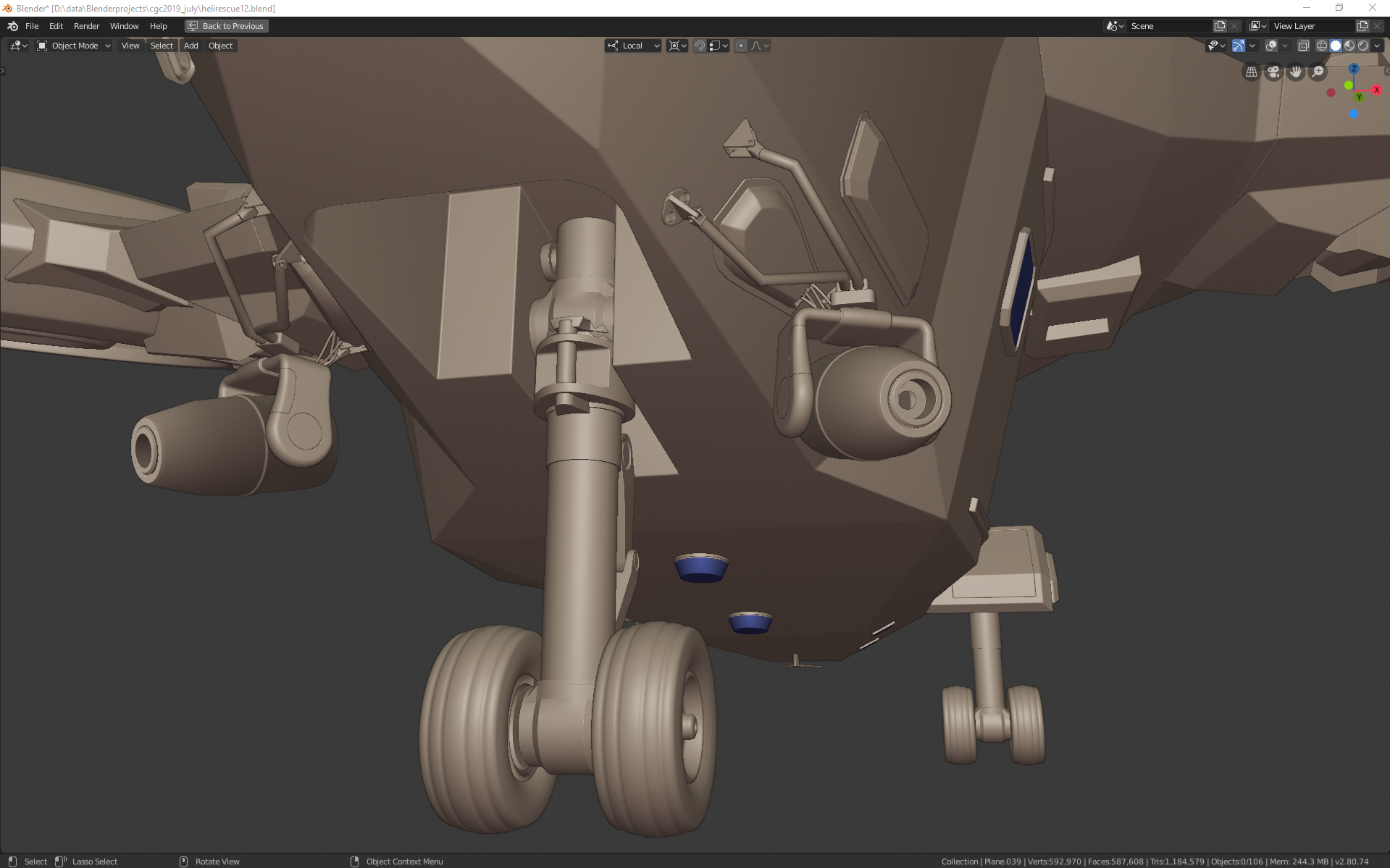 slow evening, but landing gear looks better. added cables to the searchlights aswell made changes to the holders. starting to be where i want to take it to texturing.