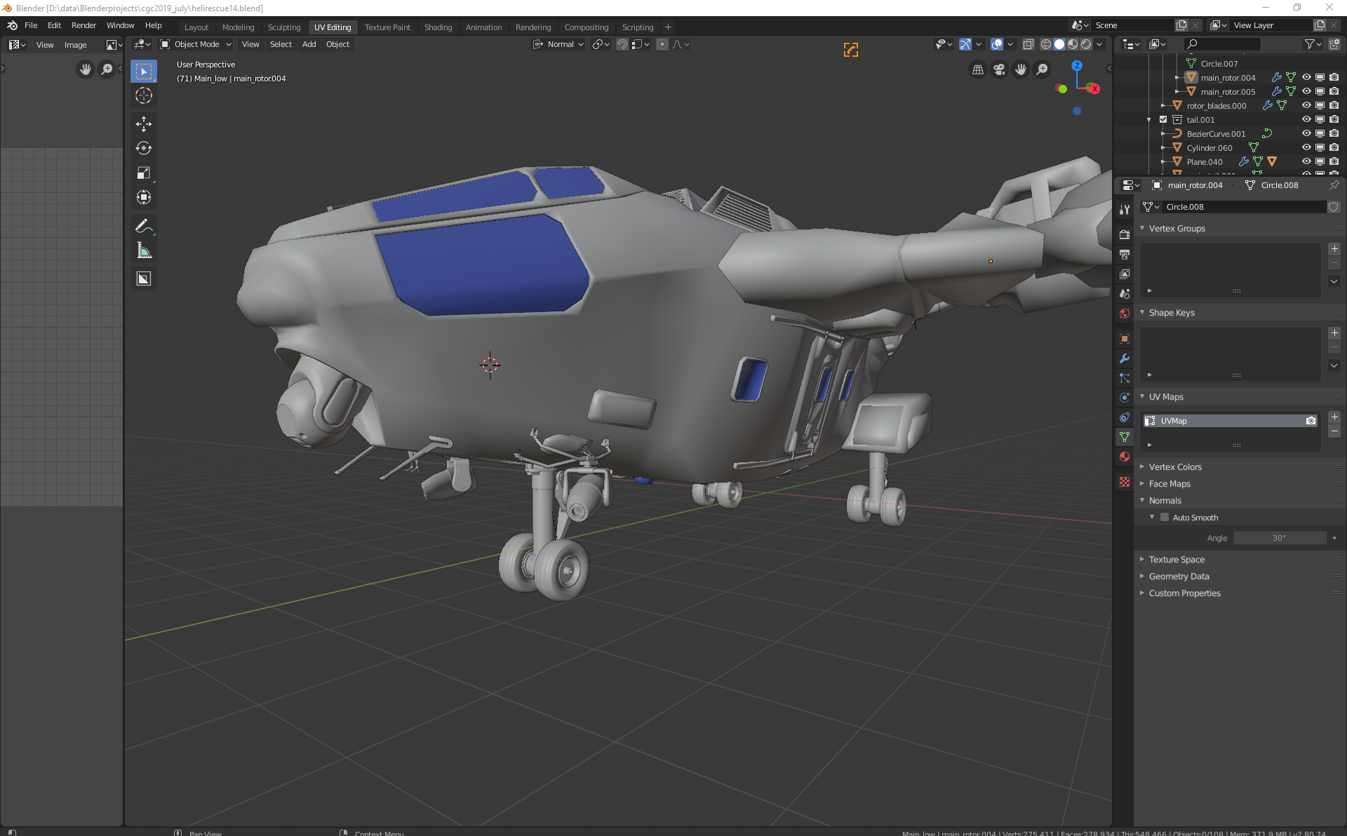 so, lot fiddling around with objects and hiding those i don't need. like i only need one tire. one wing rotor etc. anything that is something you cant see on other side is going to be sharing uvs.