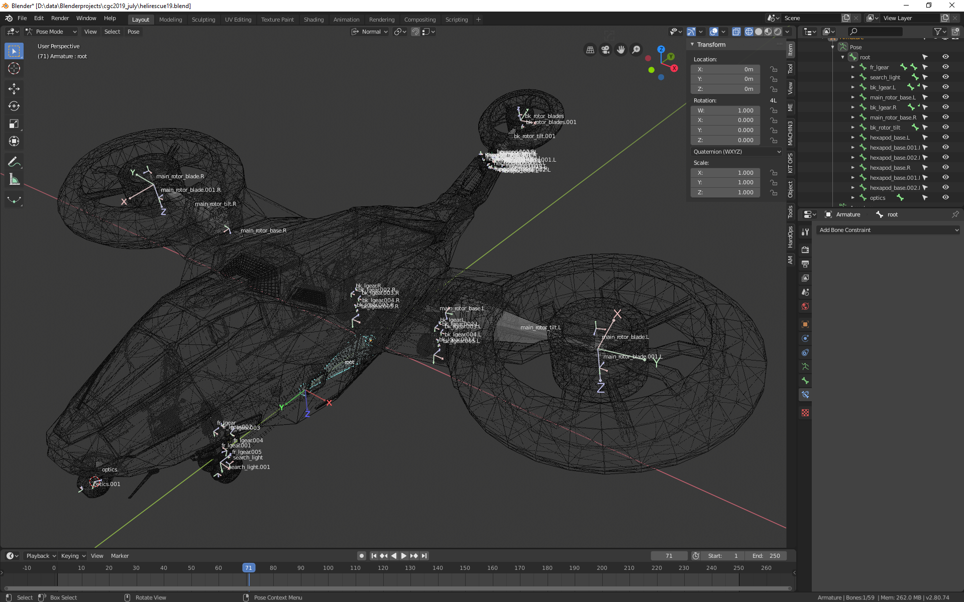 riggin done. now need to make landing gear animation and rotor spin. rest i can key in ue4.