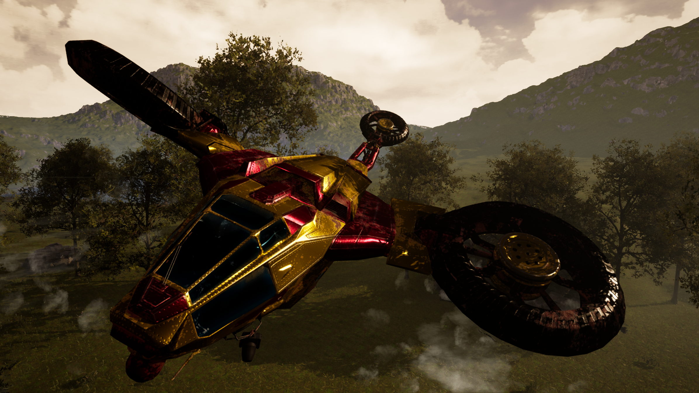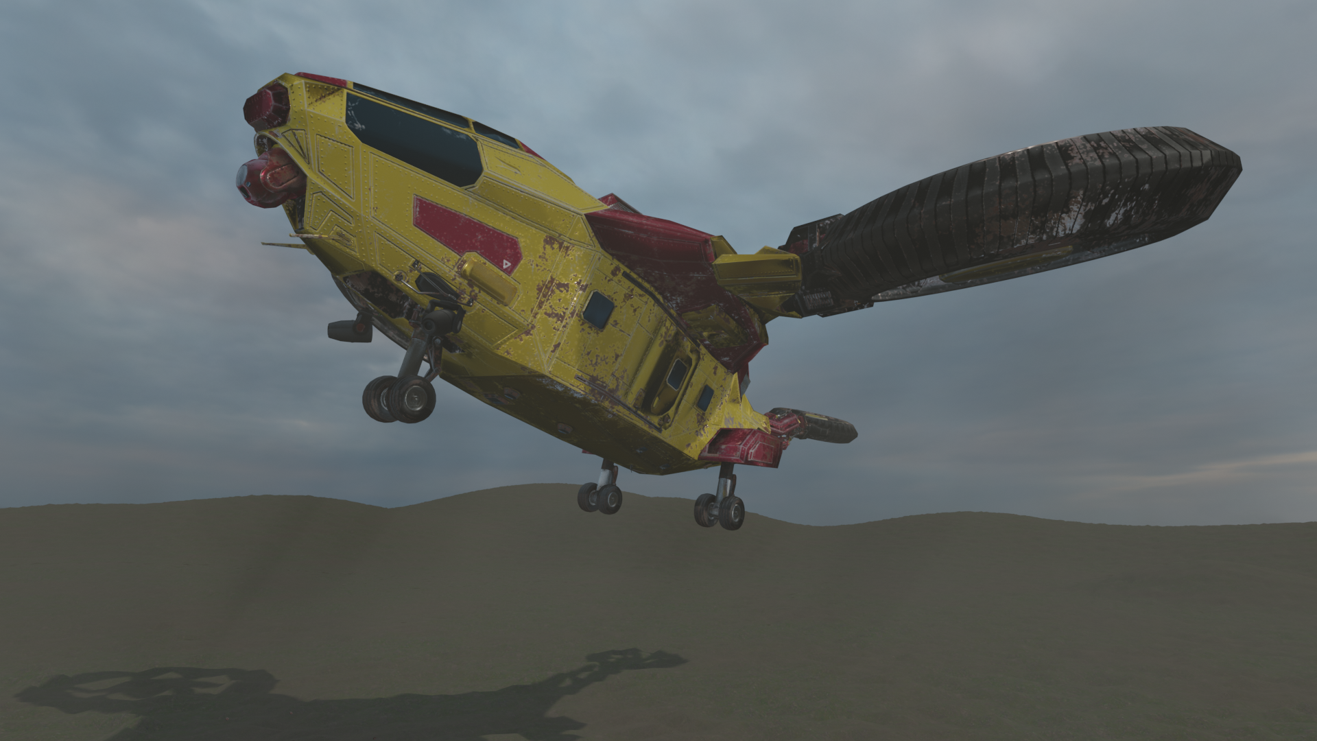 fresh eyes. color needs to change and its too shiny and too much wear on the ship. also the rotor dust is not showing properly. and need more angles where key light is from behind or atleast more from the side. good thing is that now its just copying stuff around. oh and add the finished rigged model with different angles on the rotors aswell.