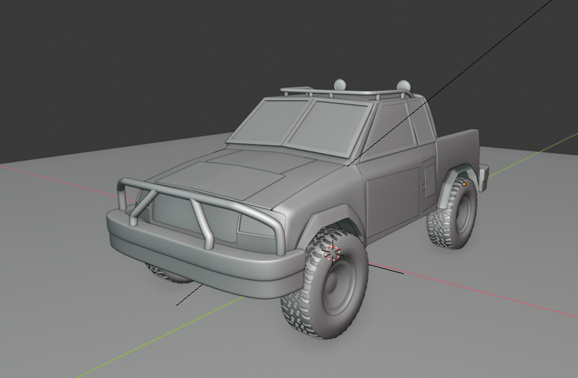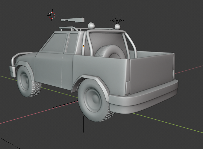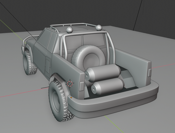 I'd like to add more to it, but next week I'll focus on texturing and add some little details to the truck through that process. I'll also be adding in at least one weapon for the top.