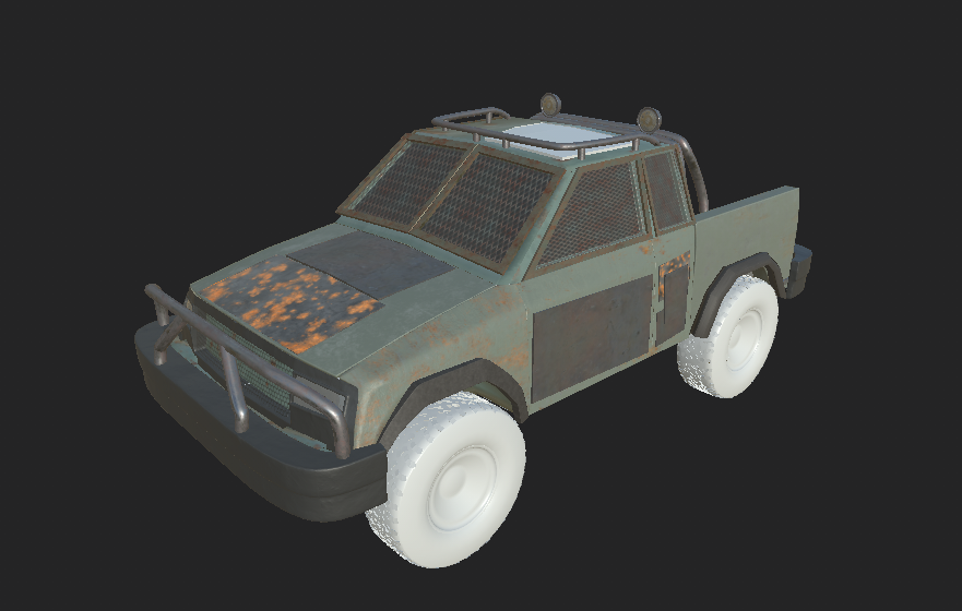 With the vehicle being apocalyptic I'm aiming for a grungy look. Rust and peeling paint, maybe even some bullet holes and metal that is being eaten away by the elements. Along with that I'd like to have some unique visual elements like painted decals. This will all be done within Substance Painter 2019.