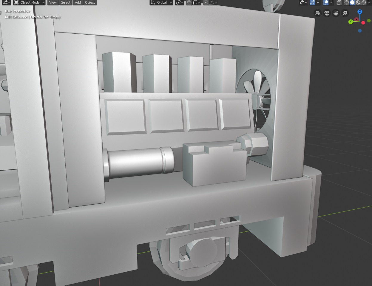 Continuing the block out today. Crammed the bare minimum controls in the cab, along with a transmission unit. I'll start detailing it this week.
