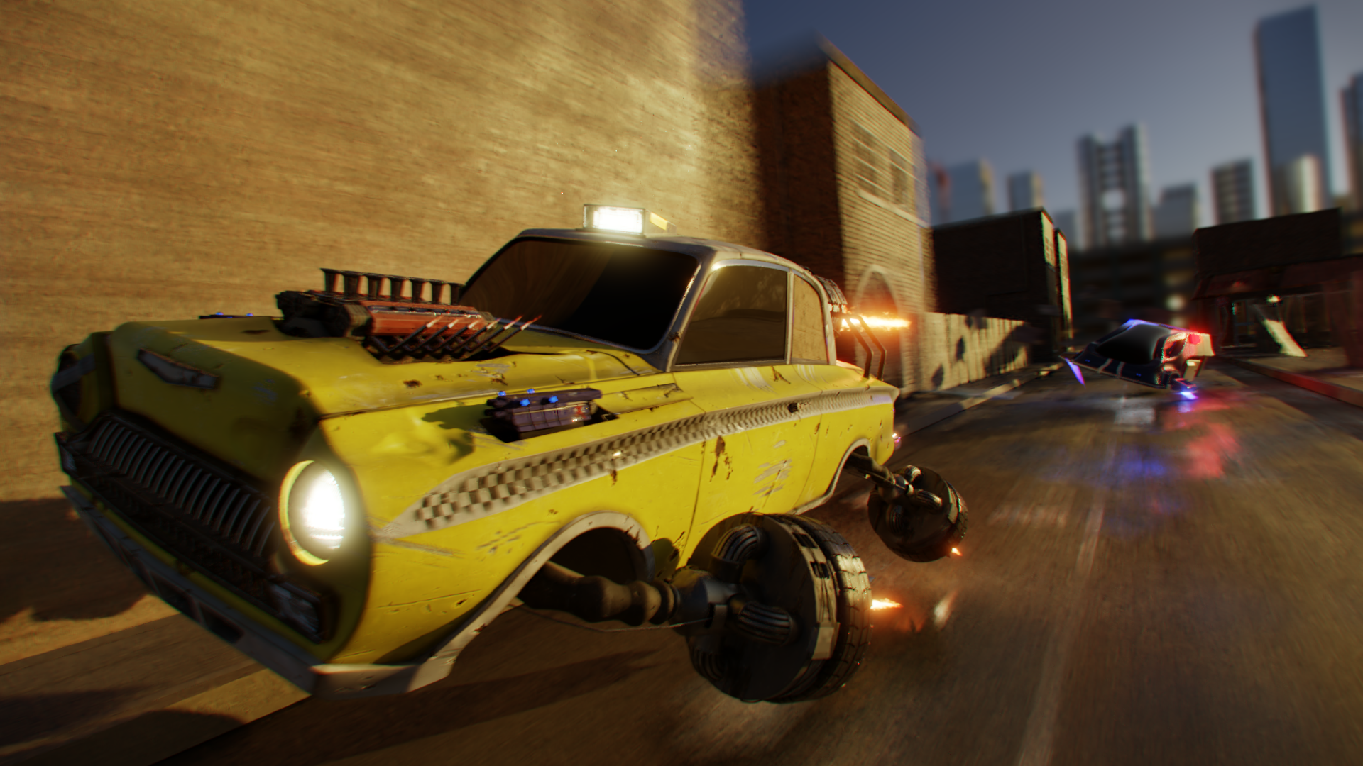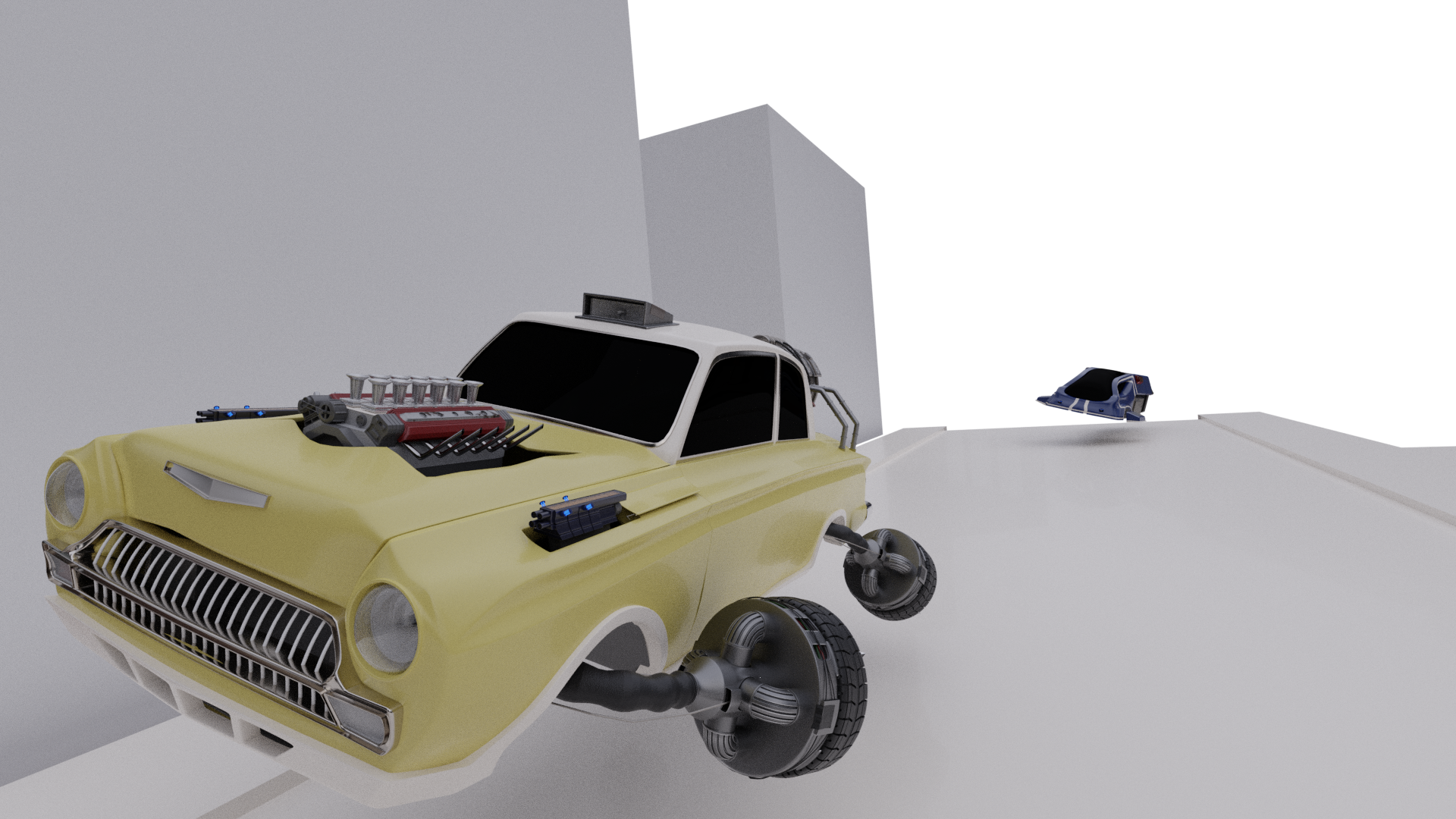 The sirens were getting closer and speed was picking up. It wasn't long before a Justice Enforcement Pacifier - though the people around here call them "Jump Jeps" or variants of - was hot on their tail. The rookie noticed the taxi driver flip a switch on the dashboard, and with it he could start to hear a faint whirring noise. Before he could begin to ponder on its origin, the whir spiraled into a ferocious roar, as the retro-fitted jump jet built into the back of the vehicle came to life and sent them to speeds that in the olden days would be used to test astronauts for suitability. The rookie began to scream, partly due to excitement, but mostly due to shock. It was only due to a fear of passing out did he stop, and only then did did he hear the mature voice on the radio return,
