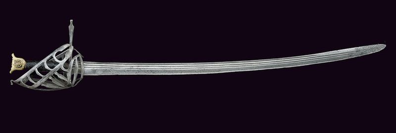 dostovel saying that he would be making a sword wedged into a rock, so I decided to redo my scene somewhat. The sword will still be have jewels and whatnot; I have quite the soft spot for the flamboyant. More specifically, it will be a Schiavona, pictured below: