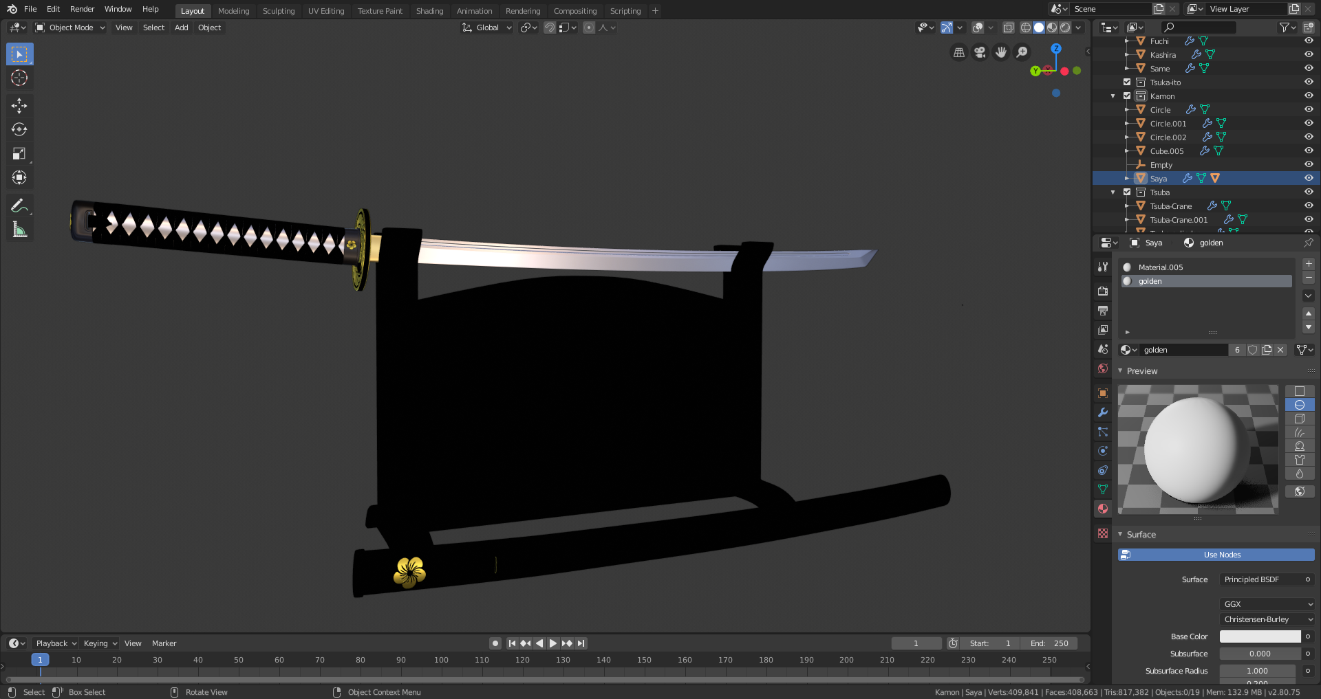 Not much to say today, just added a sheath and a stand. I may prepare a small simple scene if I can.
