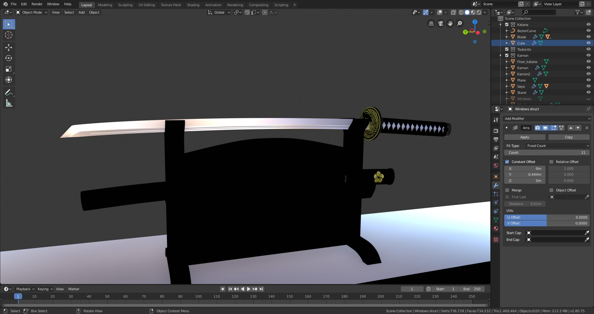 In fact I may suggest randomizing a little more. It's a "soft" recommendation though. Right now I can't really see the randomization unless I'm close to the handle. If I could read a little more of the grip silhouette randomness in a full view of the katana, that'd be ideal. If you don't agree with the note, I understand. I see a plenty of reason to leave it as is now. To make it more random would make it feel a little more used and less pristine, which may not be what you want.