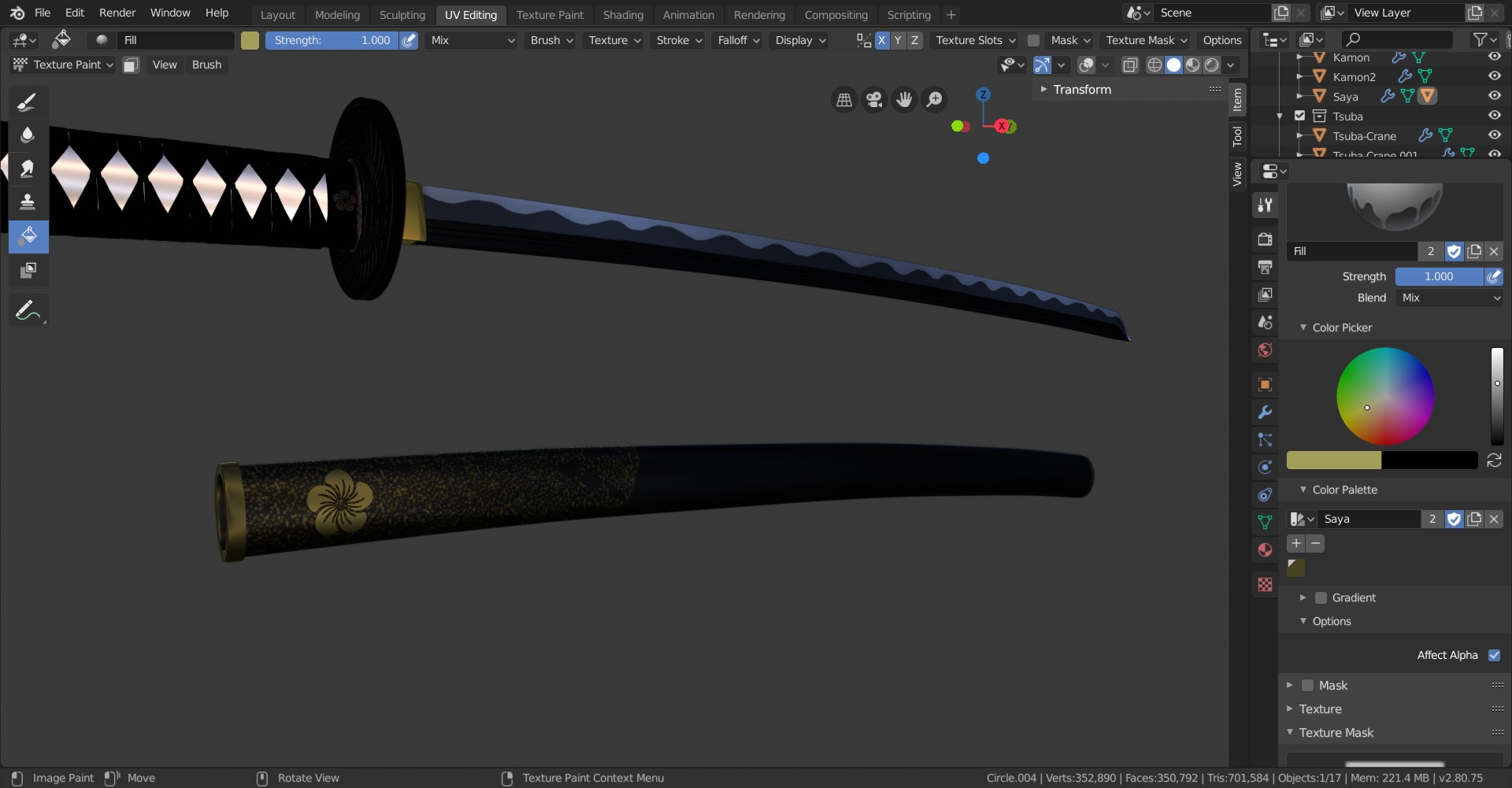 Ok, did something for the saya... Not super convinced, but I think that "not convinced" will be my moto for the Texturing part...