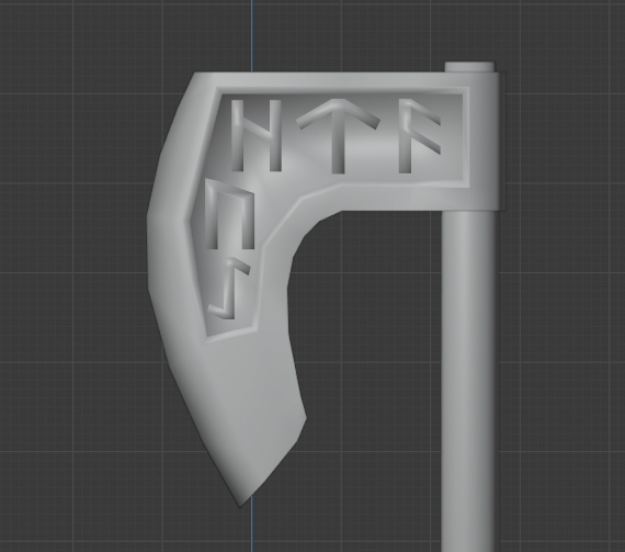 For this week, my goal was to model an axe with barbaric/viking/germanic style. I therefore put some runes in an inset on the blade and added some leather straps around the axe head and the shaft. I decided not to add any dings, dongs or scratches to the axe since I want it in a pristine state.