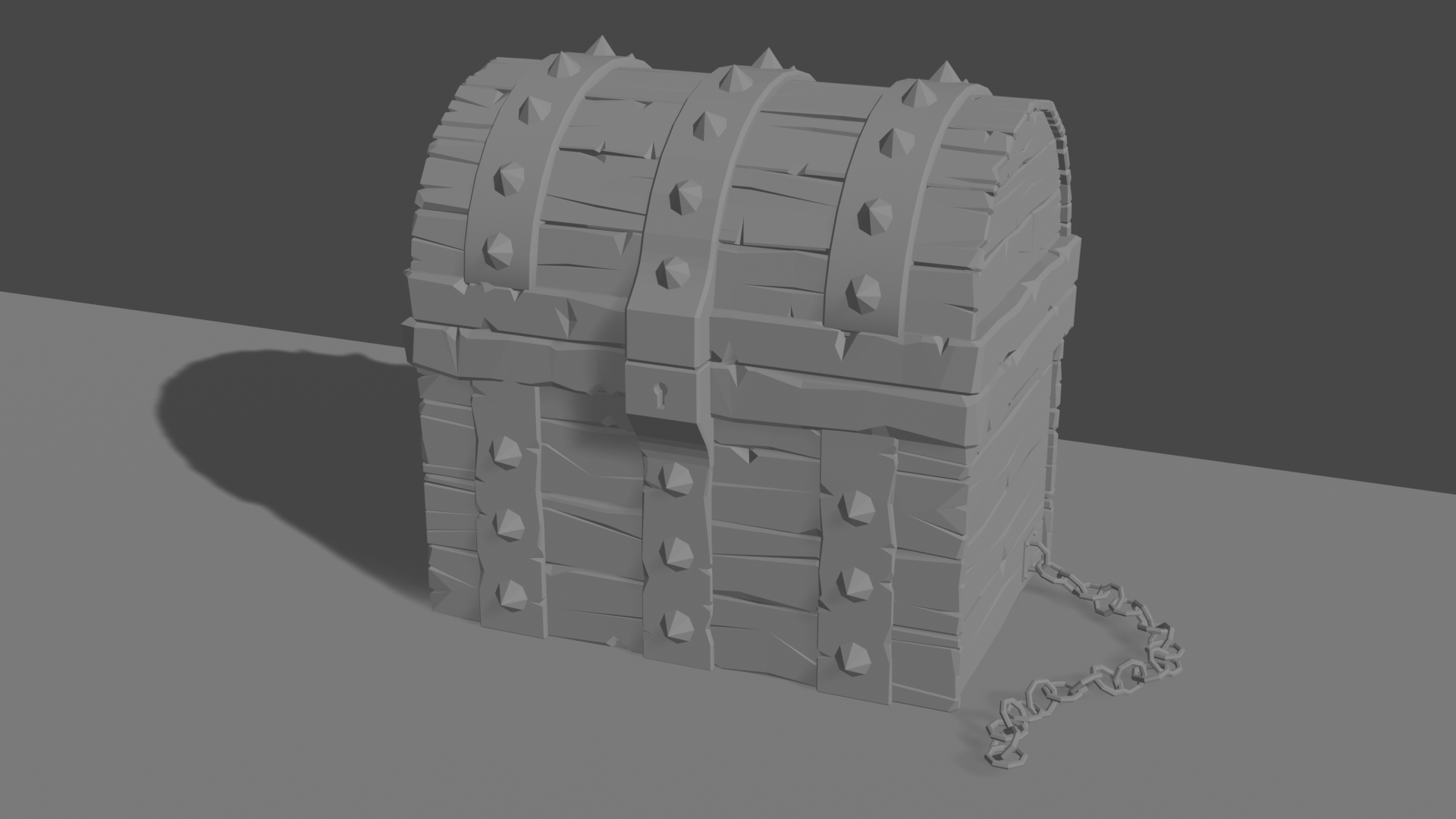 Finished chapter 1 of the Treasure Chest course. I pretty much followed to course one to one, nothing too fancy as I wanted to purely focus on learning the things useful for the sword. I will add some more details later, like some dents on the top metal pieces. The chest will have a suprise once I´m finished, though. The chain of the chest is a hint for anyone who has played Darksouls :3