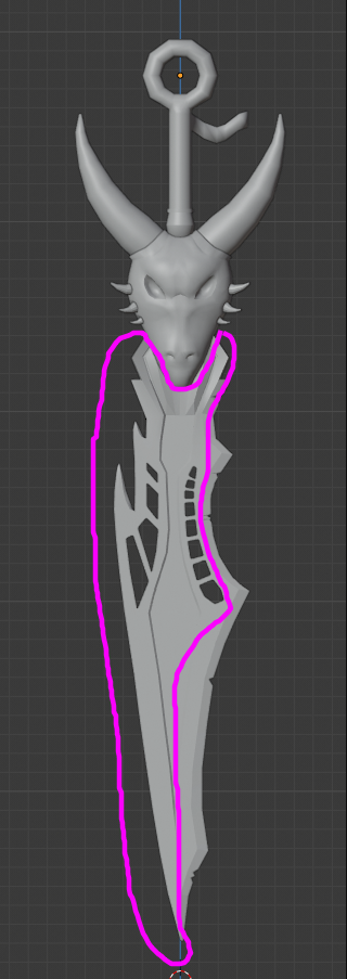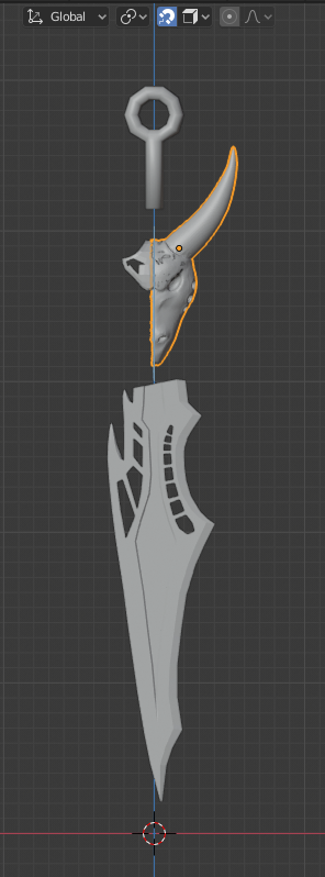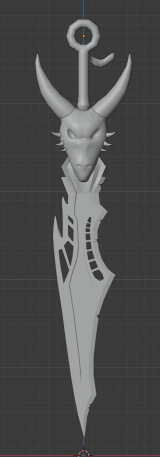Making the dragon head and figuring out how to make everything look connected were really hard, but I think it looks decent enough for now. I scrapped and changed some ideas while modelling. I made the part beneath the dragon head more square so it´s easier for me to connect it to the blade for example.