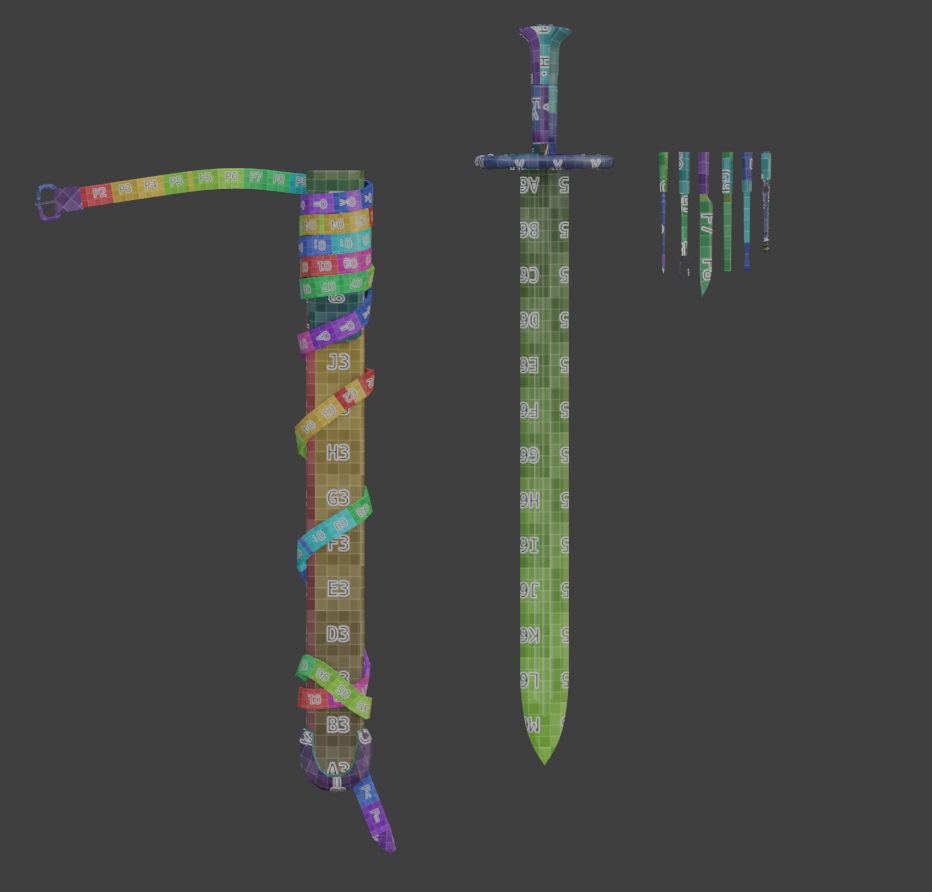 @theluthier Thanks. The places that stick out most to me is the belt and parts of the hilt. However, the belt looked alright when I used a color grid on top of it to see how the uvs look.