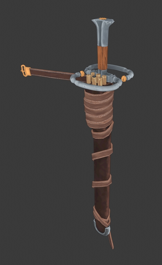 @drgnclw Your sword turned out beautifully. One of the most fully realized sword models with the scabbard, belt/strap, and utensils. My only criticism is a few points of noticeable lo-poly jaggedness: