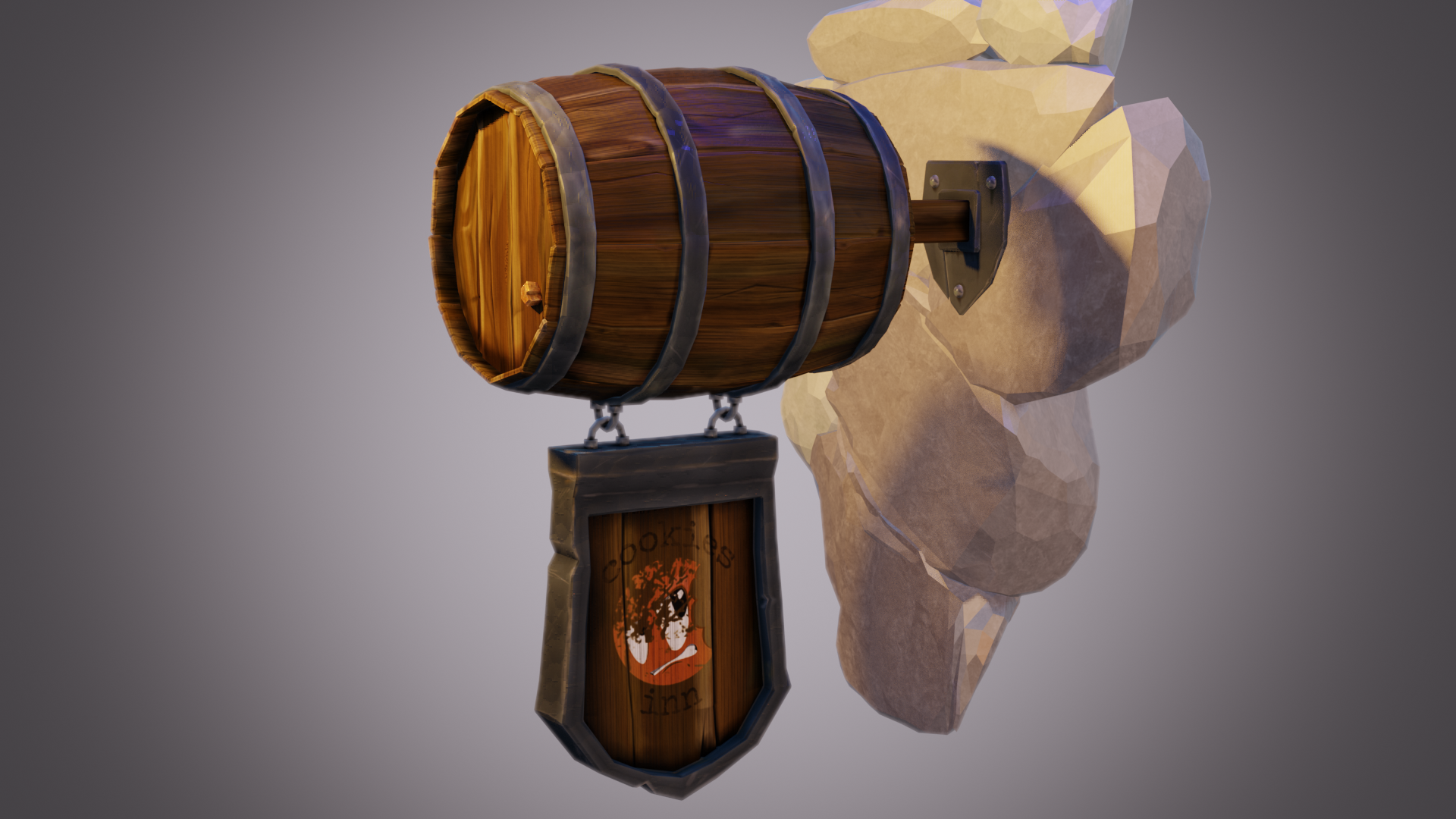 I thought there would have been a lot of swords being modeled so I went with the other objects, and tried to combine the barrel and the sign. Eventually I settled on a tavern sign, because I could incorporate the barrel in the design, really pushing myself..