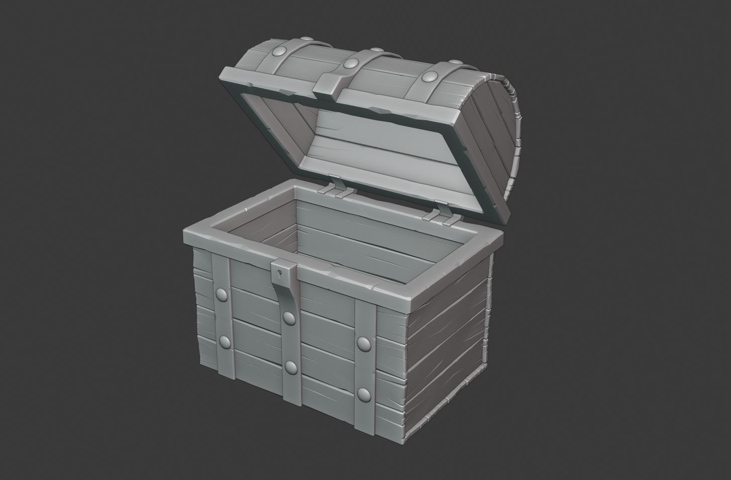 Rendered the chest using the "Workbench" renderer in blender.  Handy tool.  I assume this replaced the opengl renderer?  Anyone know if there is a way to hotkey rendering with different renderers?  Like Shift-F12 to render workbench or something like that.