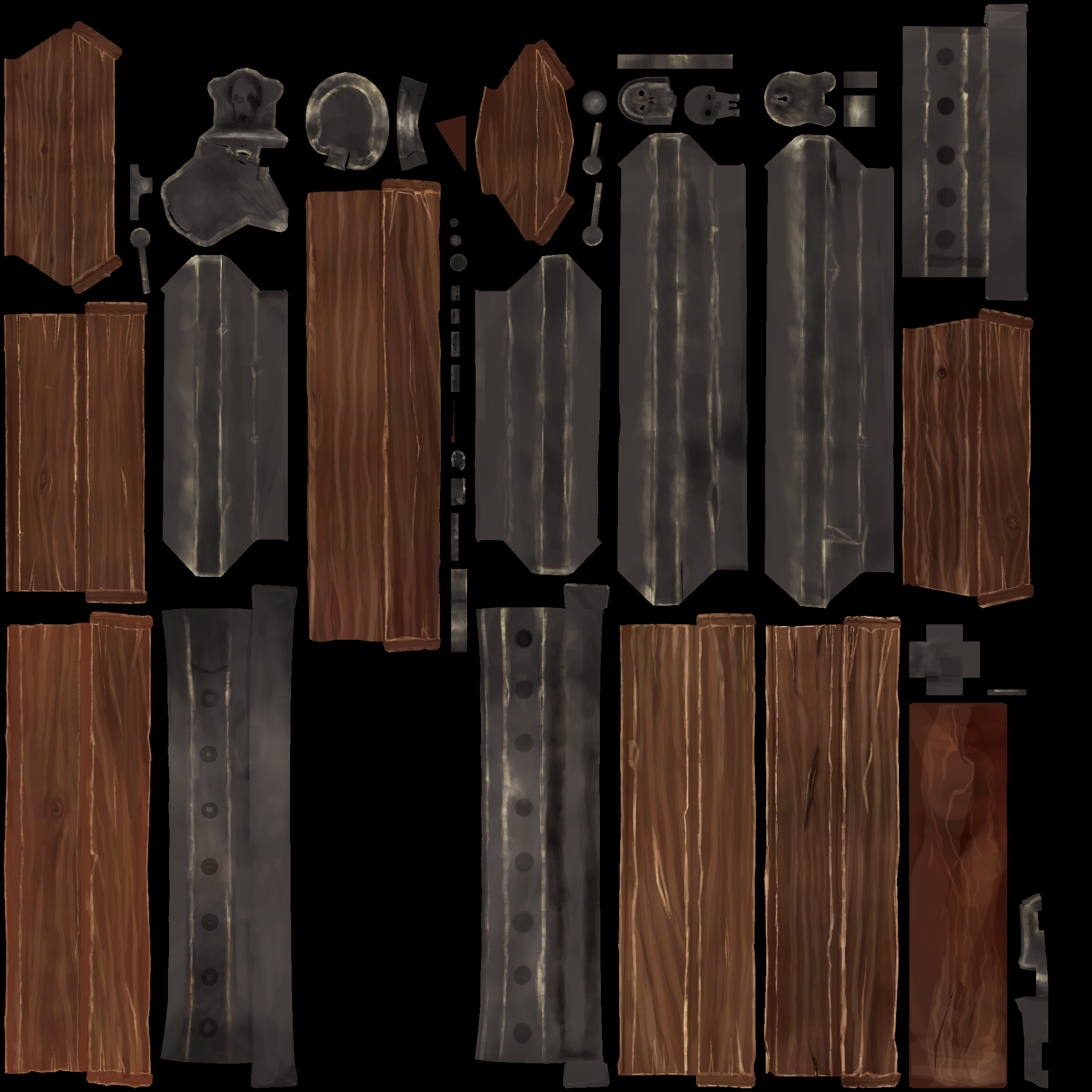 My only note is that the highlights on the wood get a little too close to white in my opinion. Which works great for the metal parts, since it's an underlying grey color. But for the wood I'd recommend keeping it a lighter tone of brown rather than white. I say this more as a note for the future. I wouldn't say it's worth changing at this point because the texture workflow I've demonstrated for the class is destructive and not layer based. If it was a "highlight layer" you could simply change the blend mode + opacity of the layer. Besides you could possibly fix it with some shader trickery.