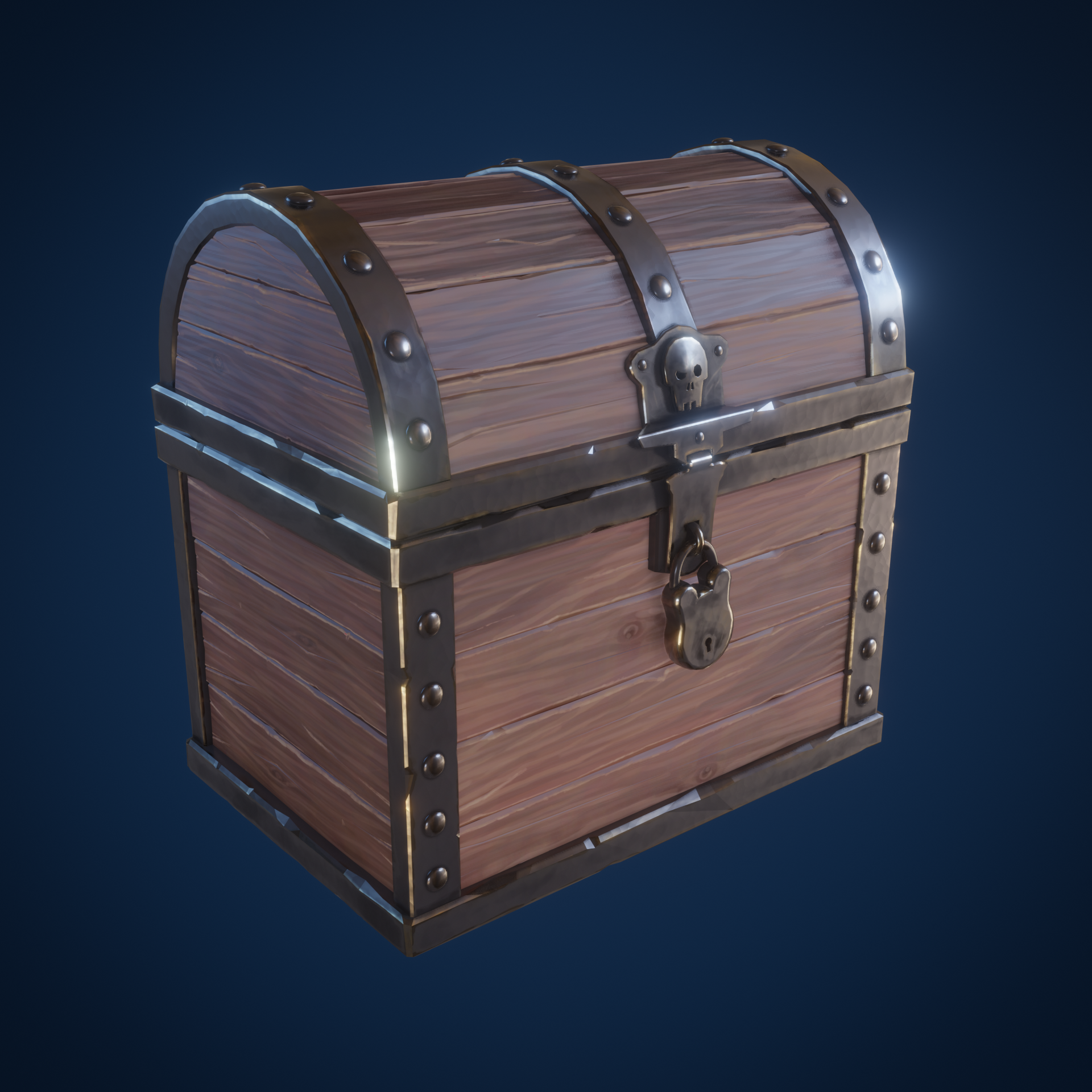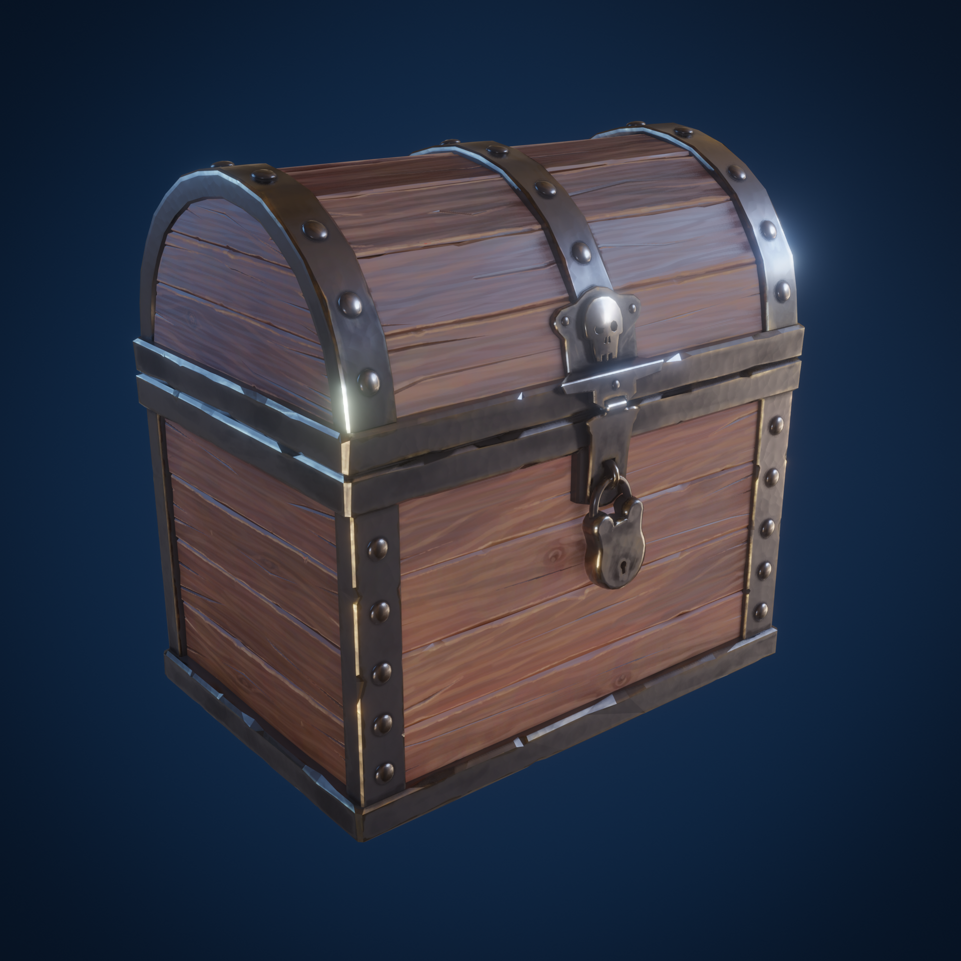 You've done a great job finishing your chest. It's got a consistent style and level of detail. The bloom effect is fitting and overall a lovely final render. I especially like the way the edge wear shows in the reflections: