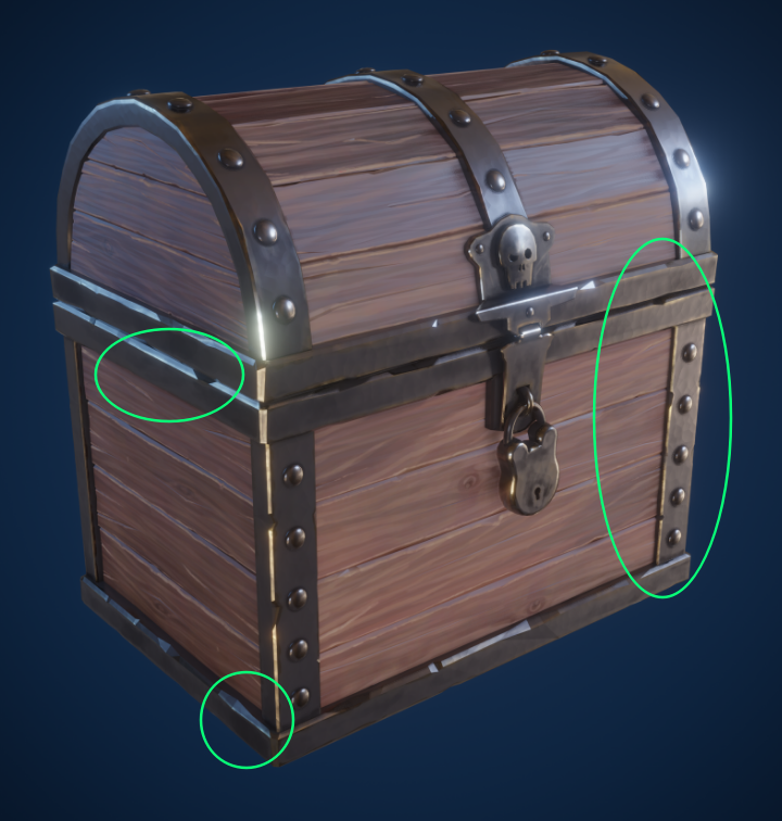 I suppose this could be a new treasure chest that's been stained/painted and the newer wood is being revealed, but that's not the typical narrative of an aged / water-logged / buried treasure chest.