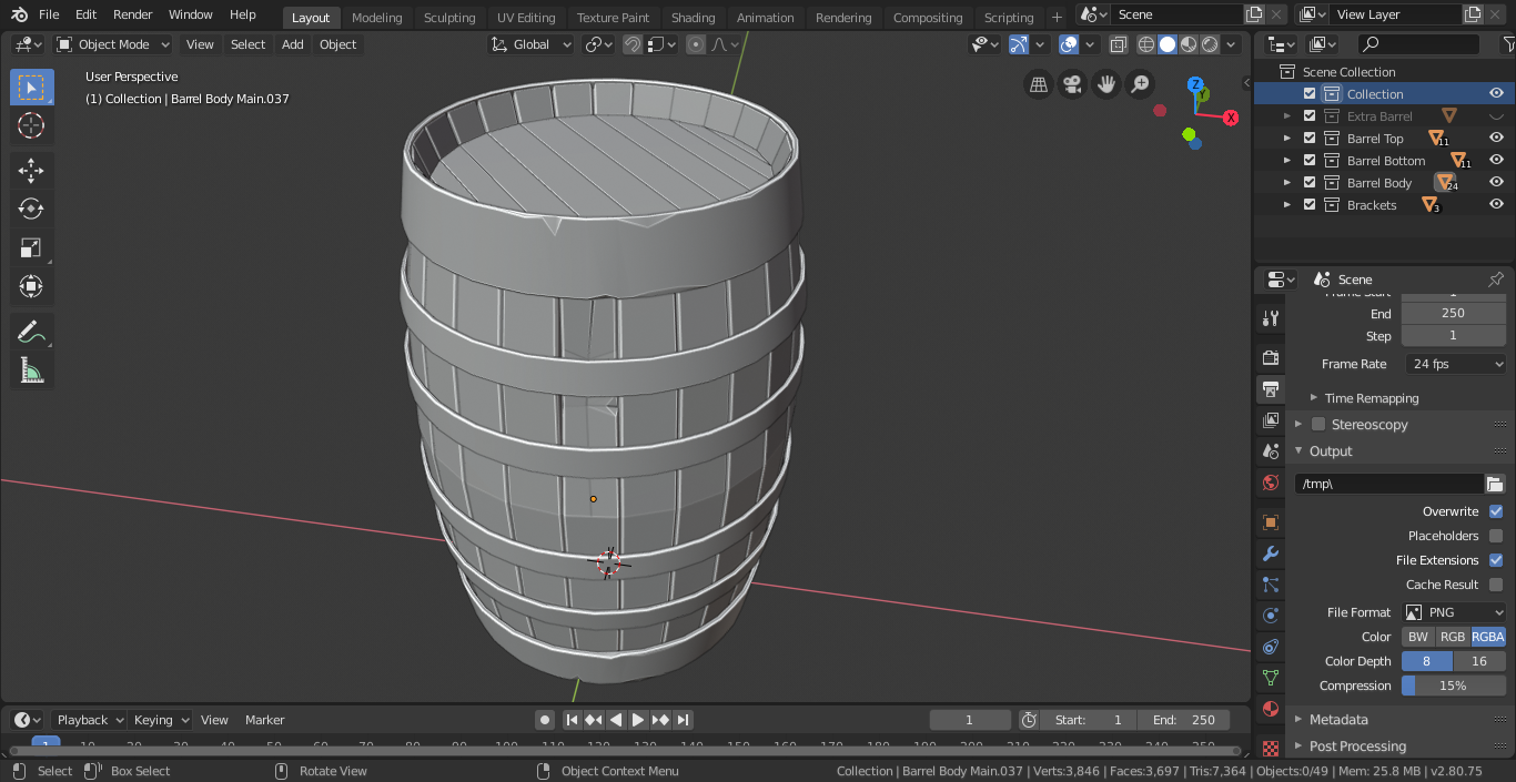 This is my first model!!  Whew!  I leaned heavily on the Treasure Chest lesson for the workflow and modeling. I am working my way through the Mesh Fundamentals and Mesh Bootcamp courses and decided to give modeling the barrel a try. Tough, but a great experience!! I came to CG Cookie by the way of You Tube. I watched Jonathan Lampel's video on the modeling bootcamp lessons. As I watched, I continuously nodded my head and kept repeating: "yep that's me." So, I jumped into the CG Cookie batter and am hoping to eventually become a real cookie.