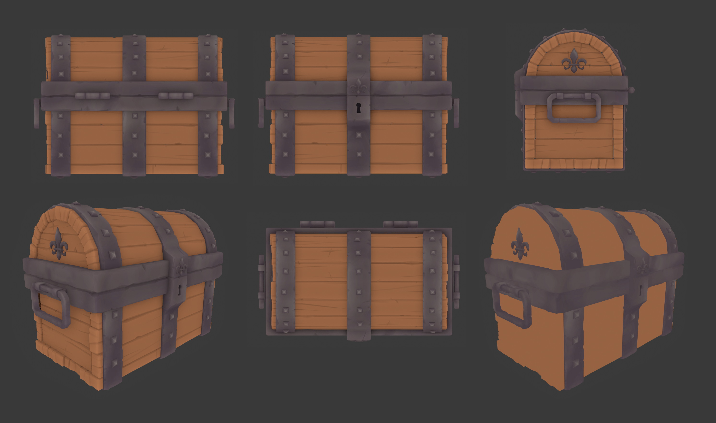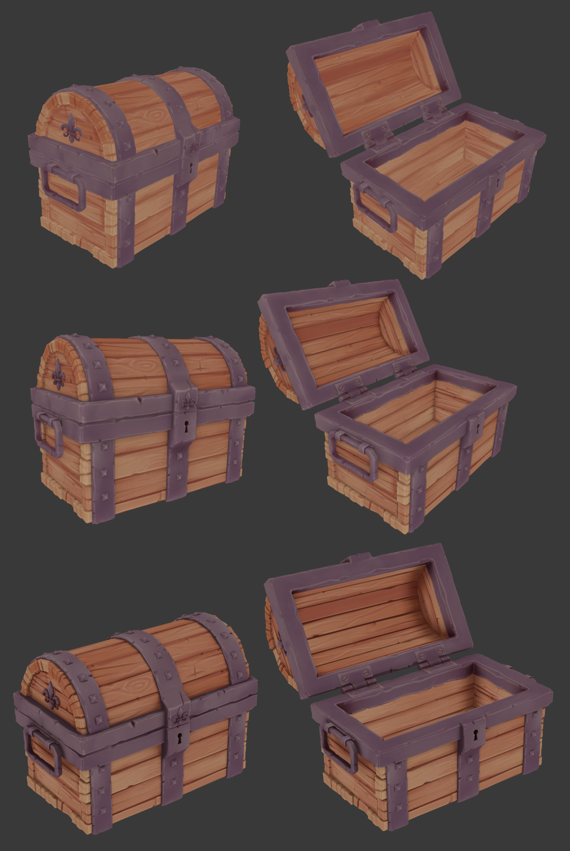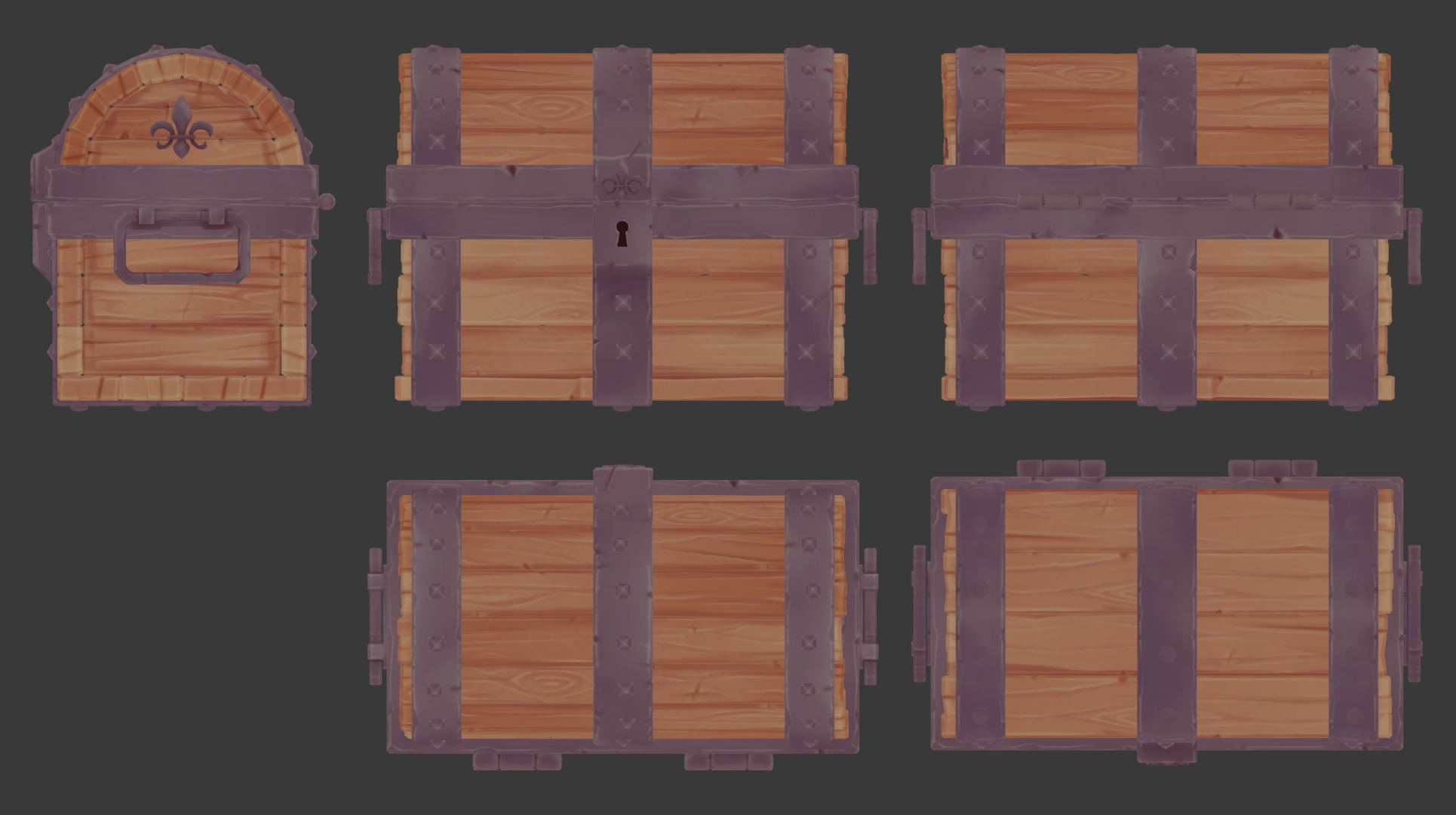views of the chest from different angles in isometric using EEVEE emissive shader.