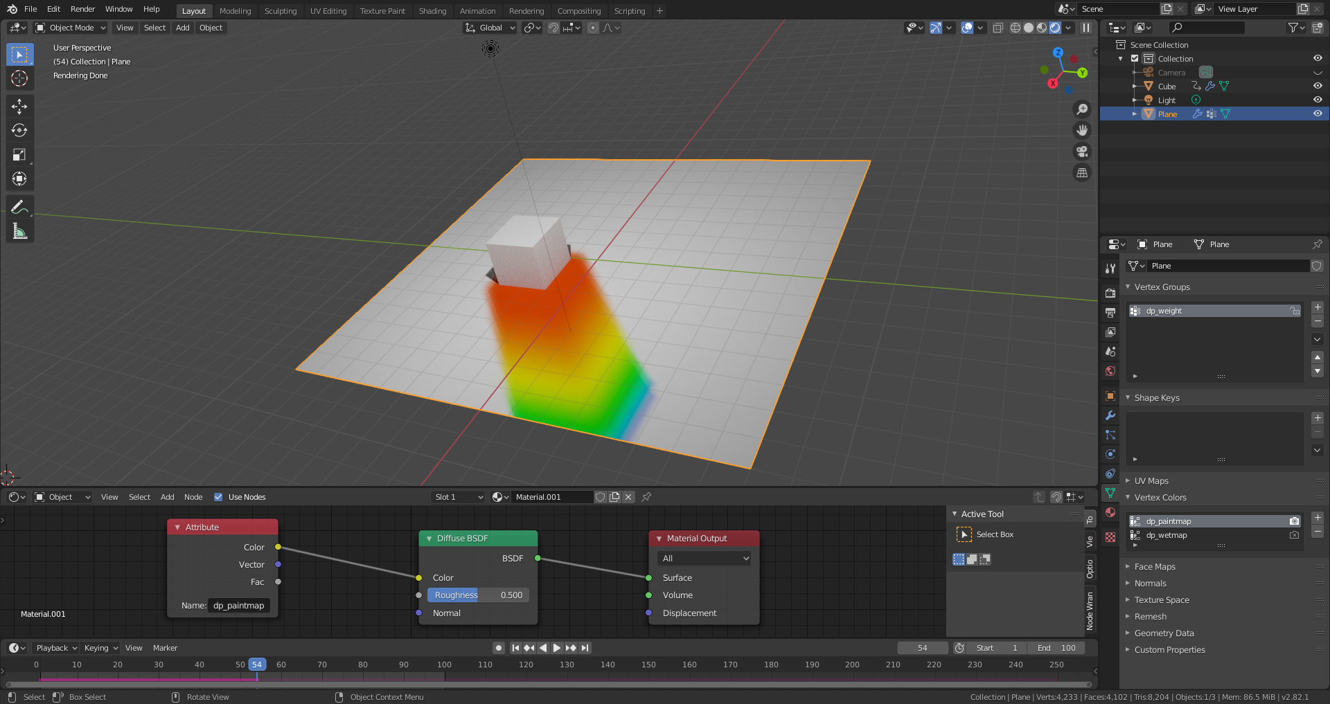 I am following the tutorials, and at about the 1:34 mark, the cube is shown painting the plane in real time. In Blender 2.8, I can't seem to find the display mode that allows this to be shown. Can you tell me how I can see in the viewport the vertices of the cube painting the plane in real time?