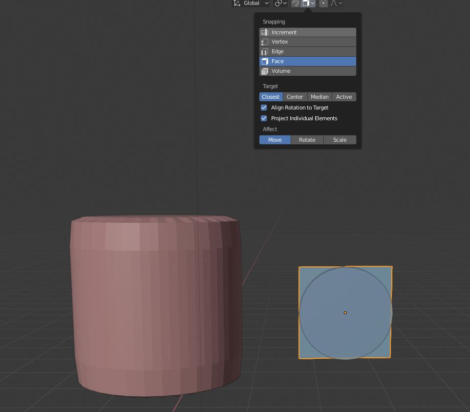 i parent the circle to the grid. Now i can hover over the cylinder, press ctrl and the circle fits perfect to the cylinder.