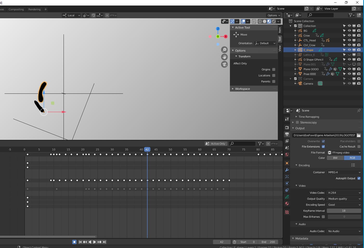 and when I set a key in the first frame for the crow that has zero opacity the crow started working