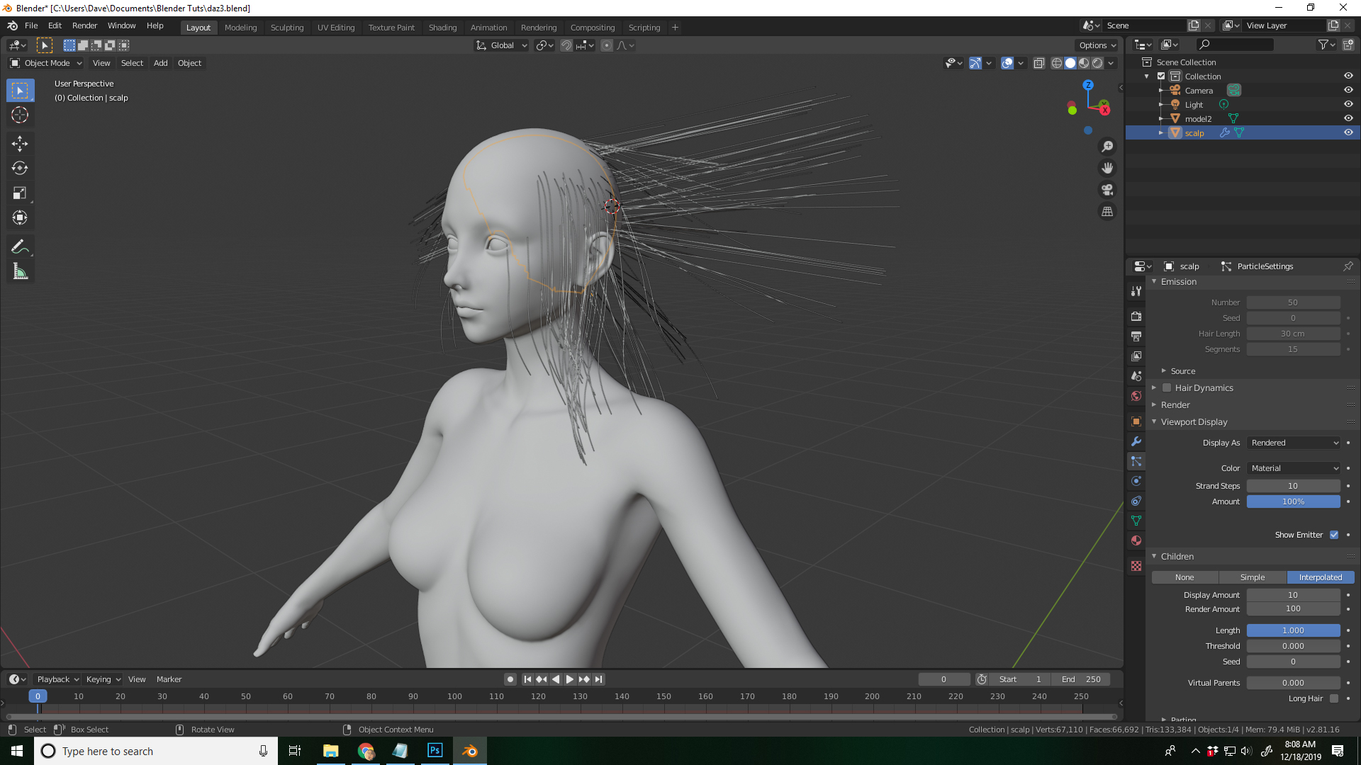 Anyways, is there a reason for why I've got hair coming out of the model's eyes? Is it a clumping issue? Did I mess up with the scalp creation?