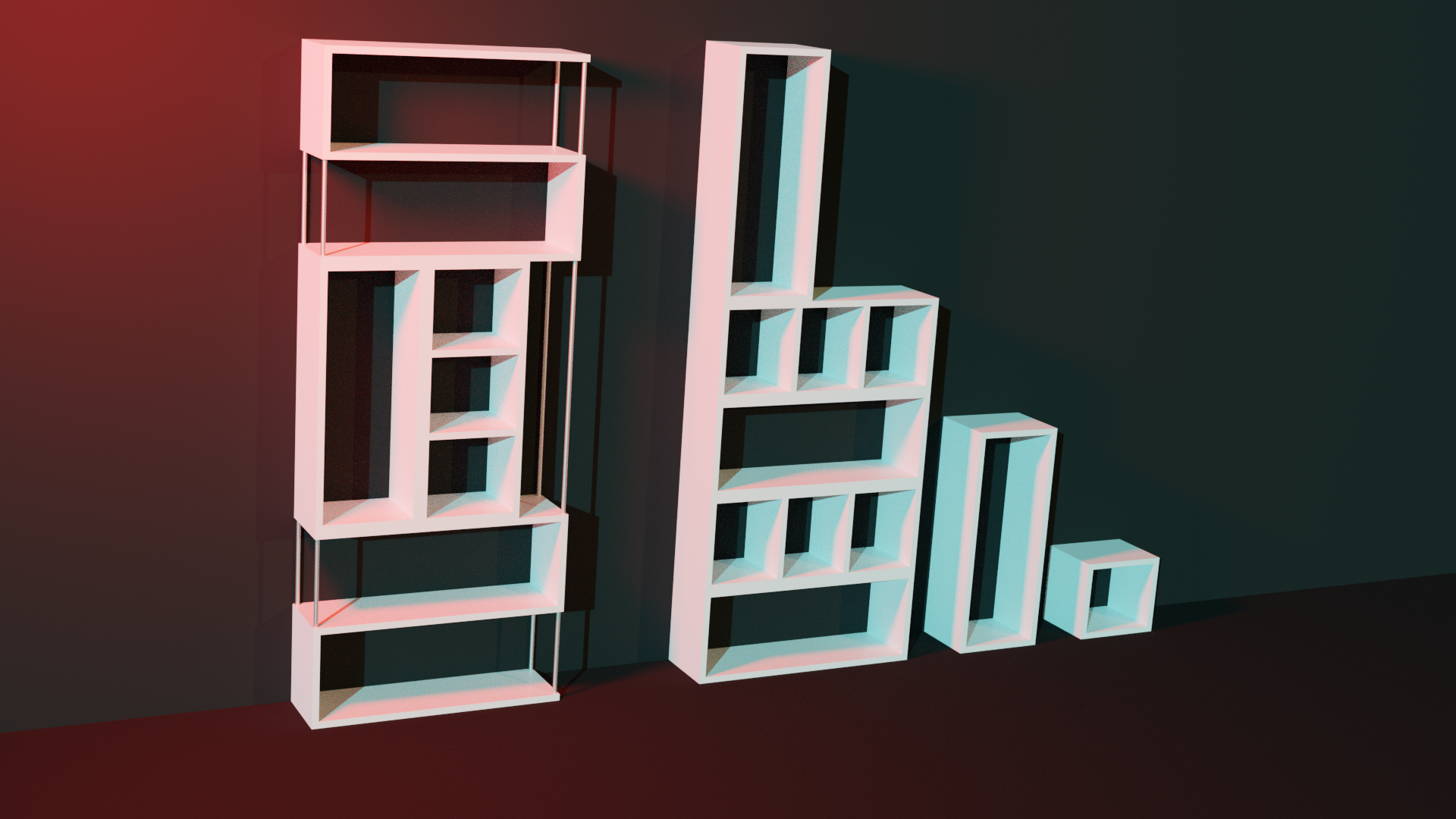 Probably could have put more effort into this one. I did like the modular design. However, it turned out very flat otherwise. I'd really need to make props to sell this one better. e.g. actual books and small flower pots, etc. But those would take longer than the bookshelves themselves at my current rate. Oh well.